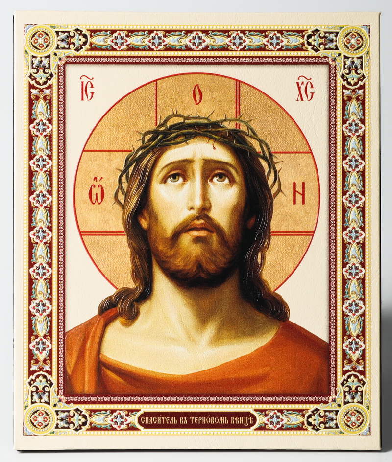 Икона настольная 11х13 на подставке, объемная печать Спас в терновом венце