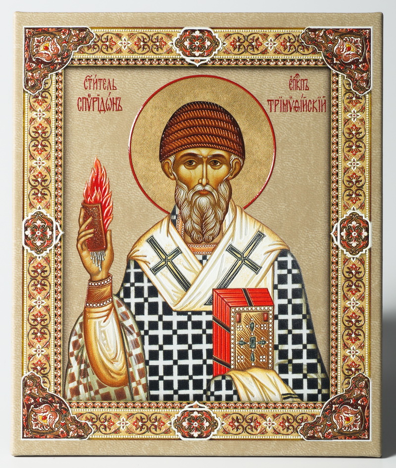 Икона настольная 11х13 на подставке, объемная печать Спиридон Тримифунтский 2