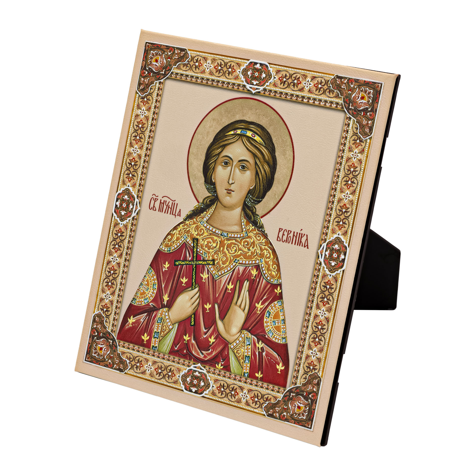 Иконы настольные на подставке изготовлены с использованием техники объёмной печати на коже. Для производства икон применяются только высококачественные материалы, яркие, насыщенные краски. Используется современное оборудование – УФ плоттер Mimaki. По Вашему заказу мы можем напечатать любой лик.