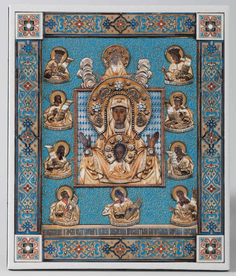 Икона настольная 11х13 на подставке, объемная печать Знамение Курско-Корен. иконы на гол.фоне