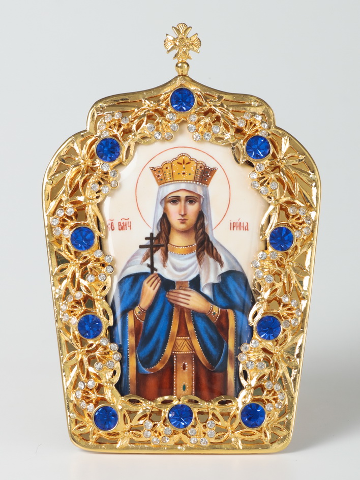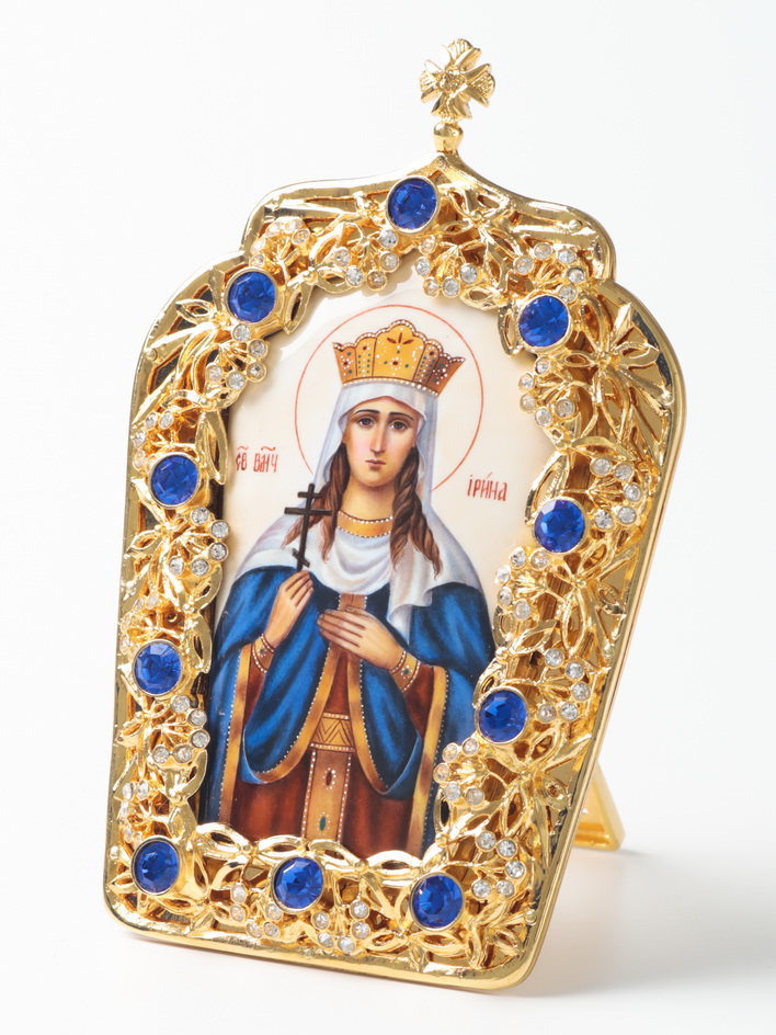Икона настольная №12 финифть / золочение / Ирина