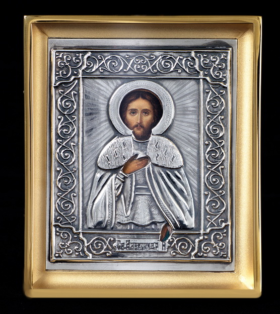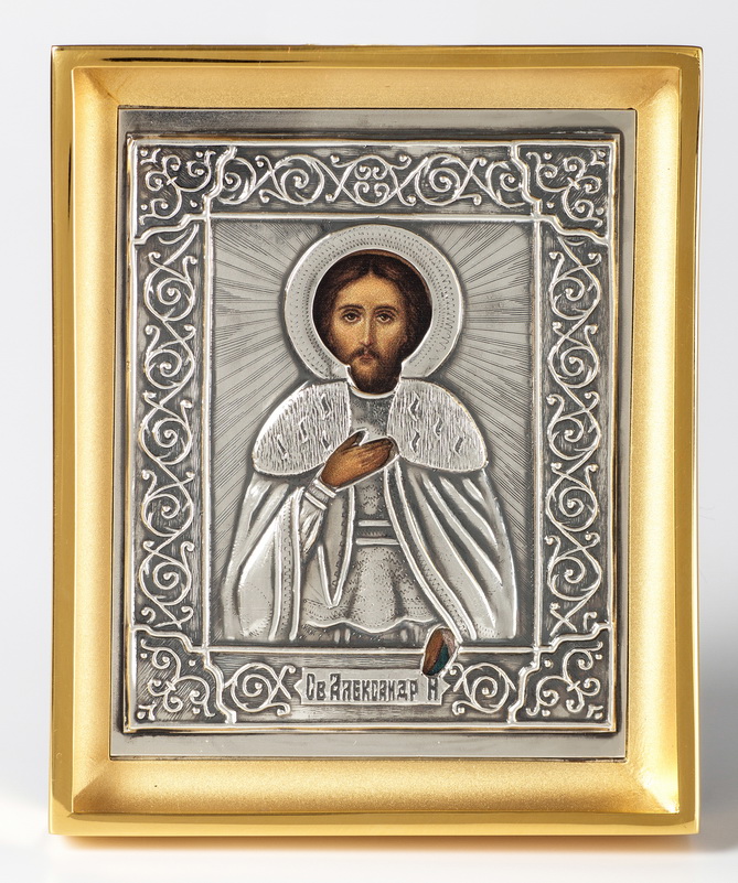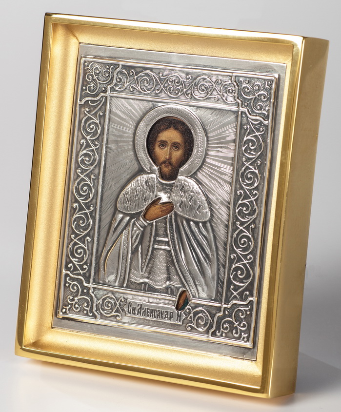 Икона настольная №128 с г / пластической вставкой / фото / золочение, серебрение / Александр Невский