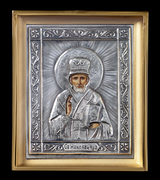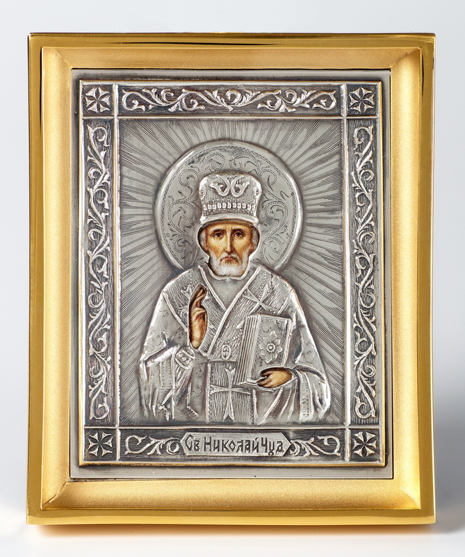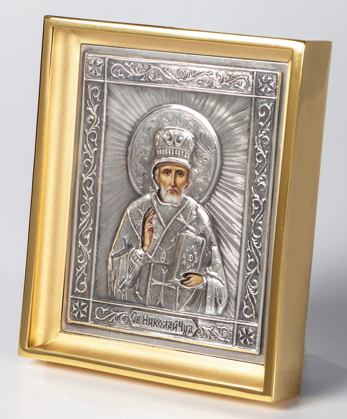 Икона настольная №128 с г / пластической вставкой / фото / золочение, серебрение / Николай Чудотворец