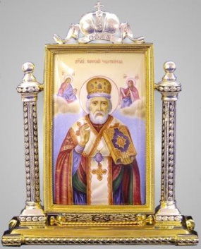 Икона настольная №13 серебро финифть, эмаль / золочение / Николай Чудотворец (УИН)