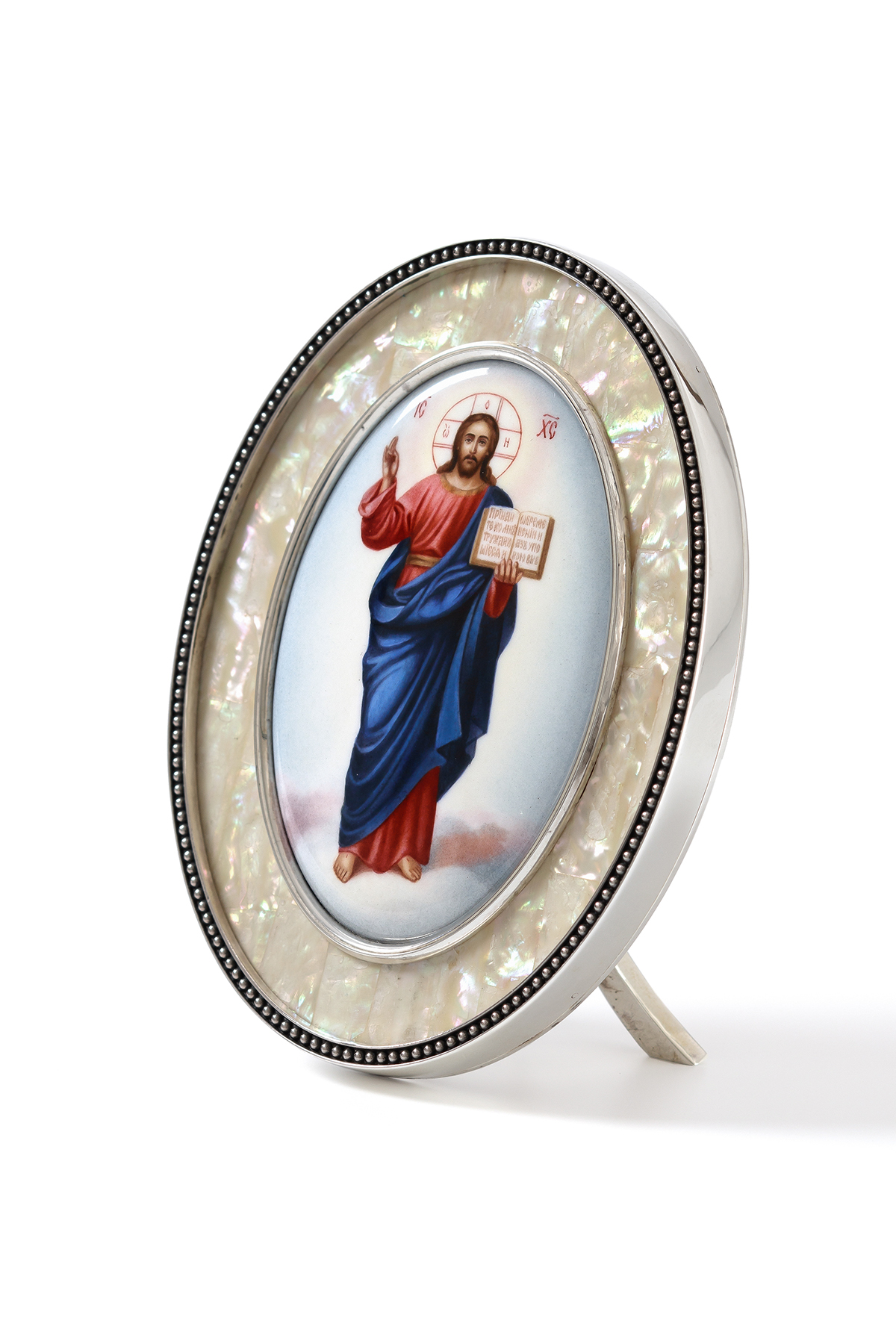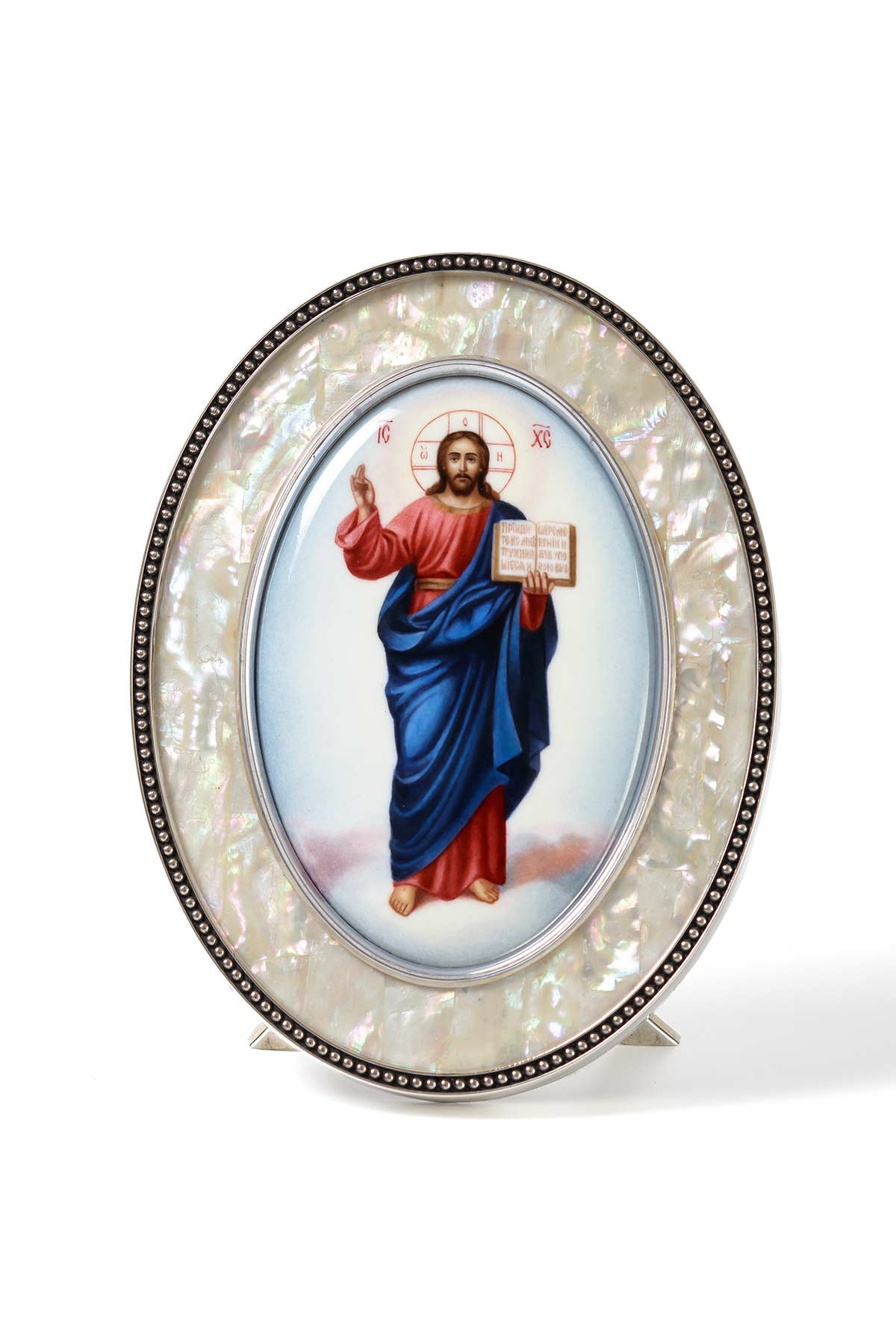 Икона настольная №134 серебро финифть, перламутр Господь Вседержитель (УИН)