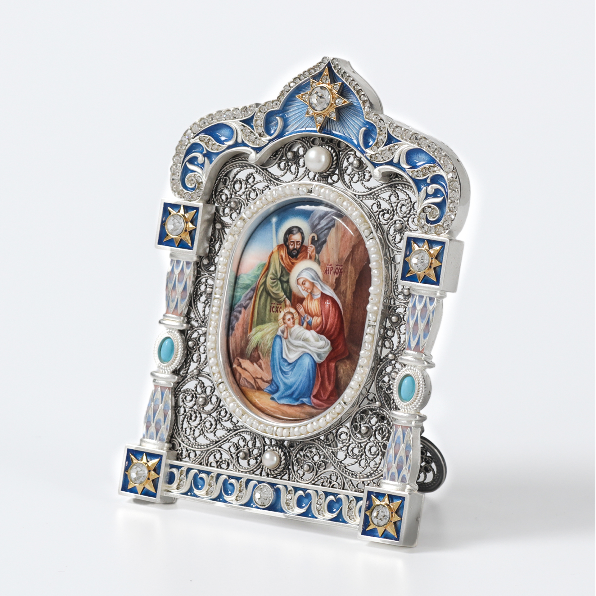 Икона настольная №137 финифть, эмаль / серебрение, золочение / Рождество Христово