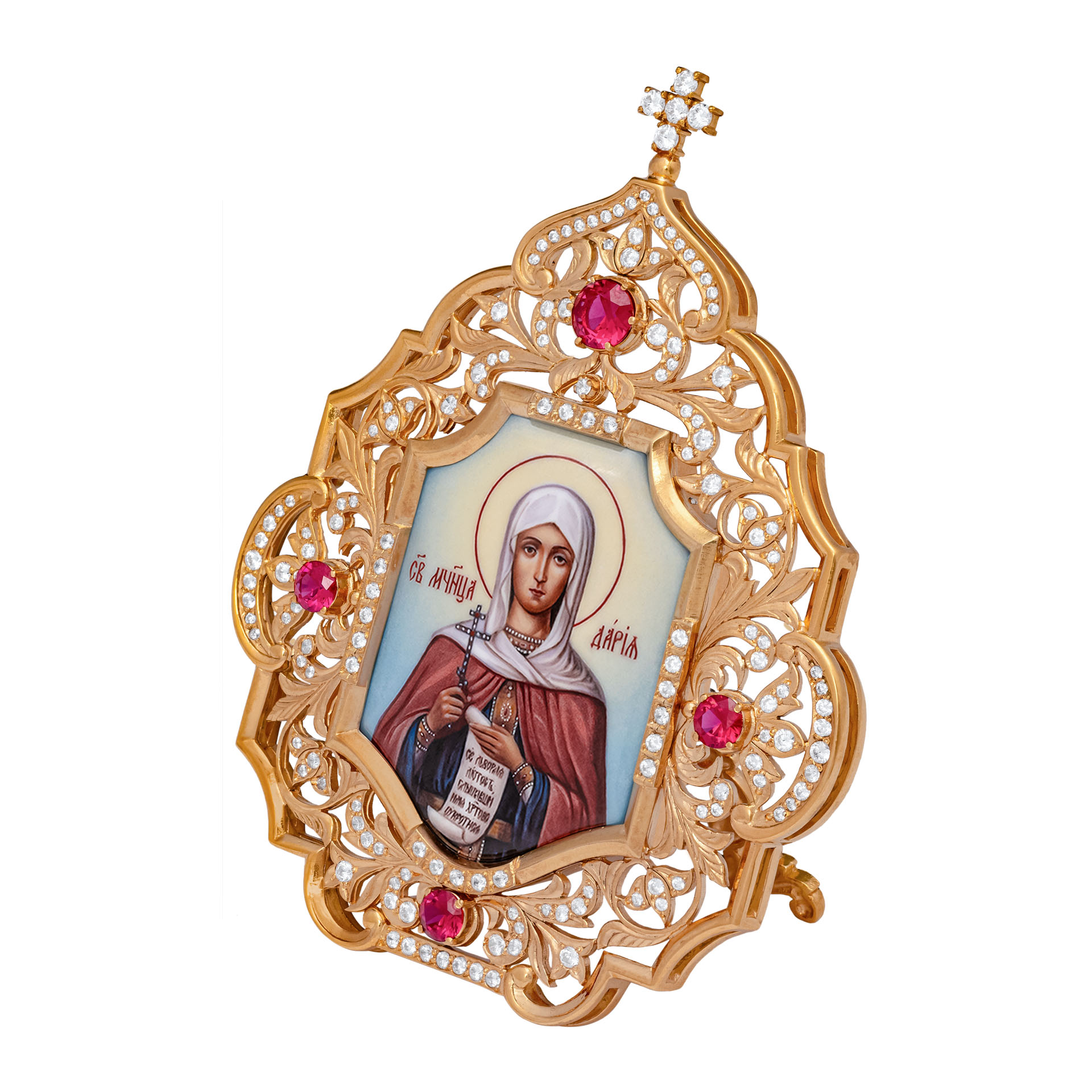 Икона настольная №152 / Фианиты серебро деколь / золочение / Дария (УИН)