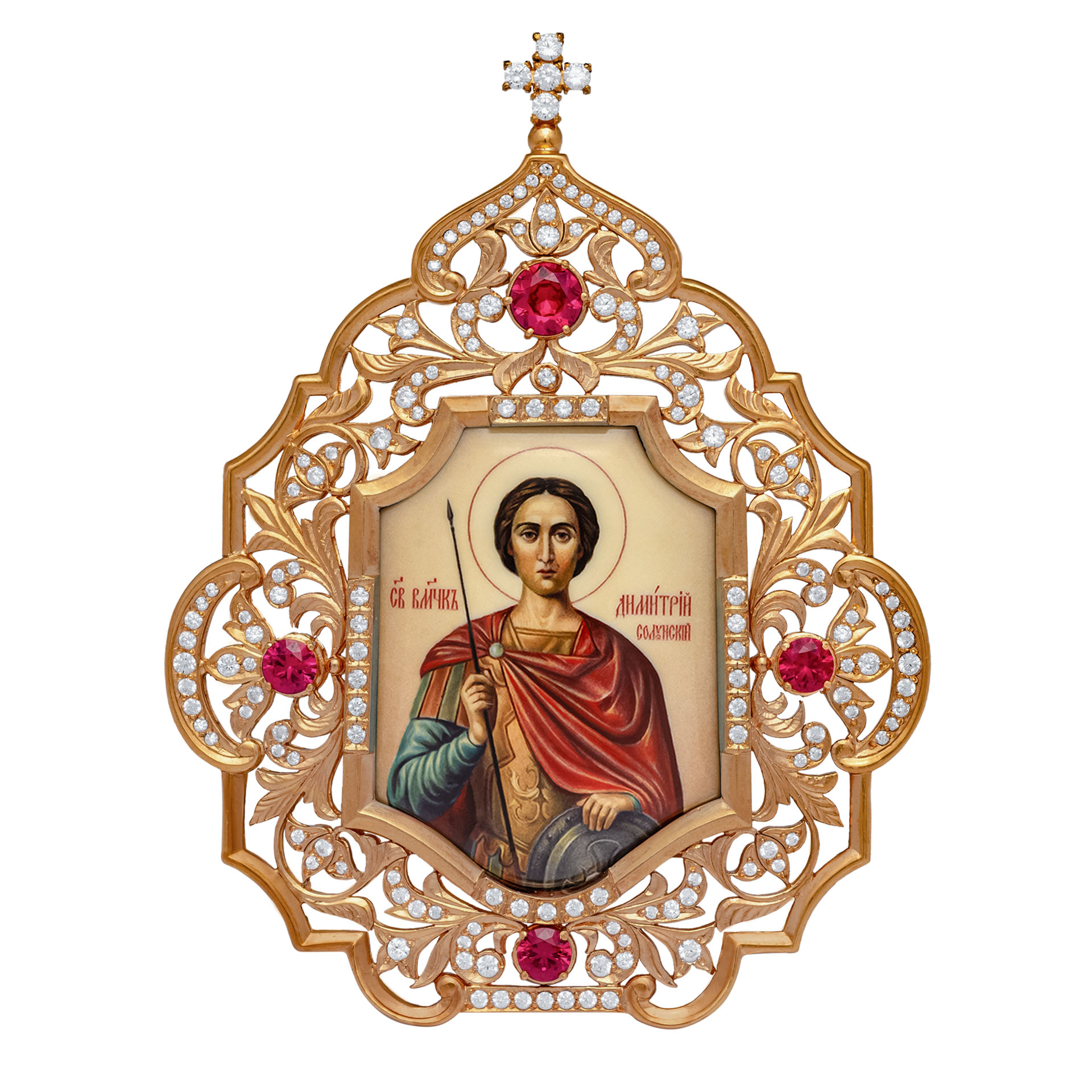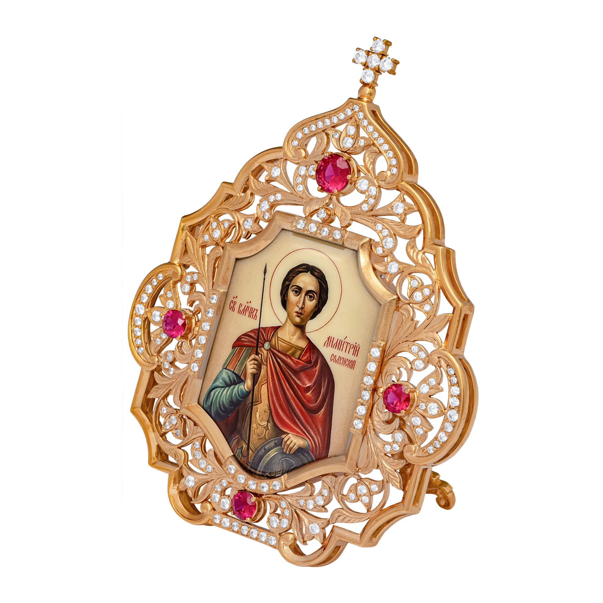 Икона настольная №152 / Фианиты серебро деколь / золочение / Дмитрий Солунский (УИН)