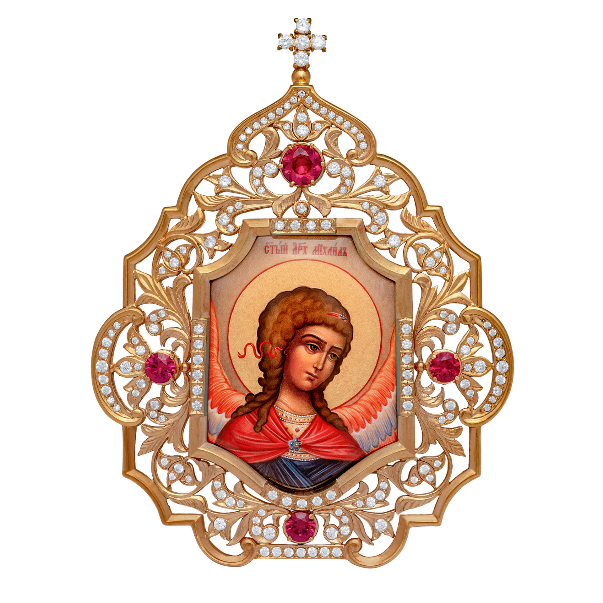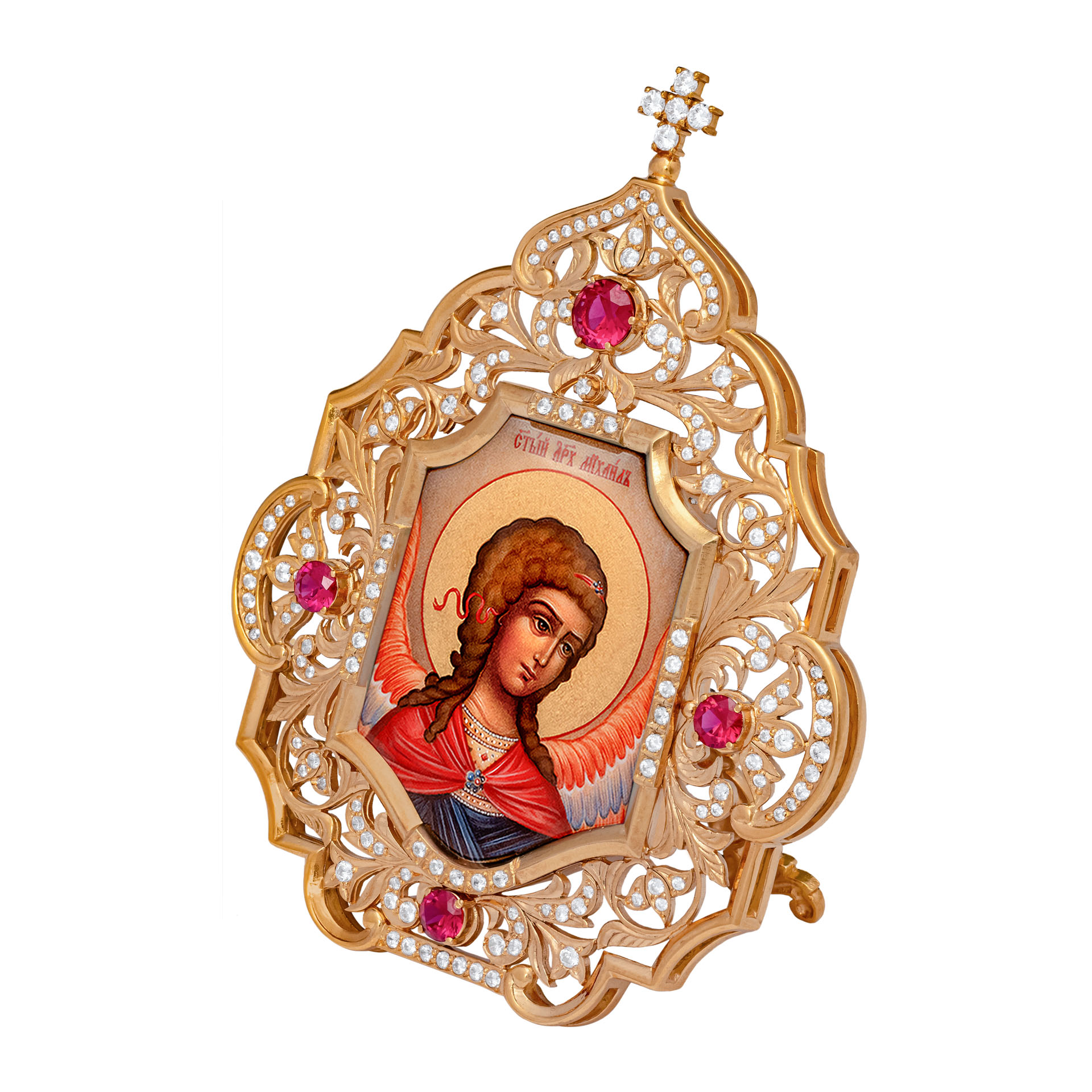 Икона настольная №152 / Фианиты серебро деколь / золочение / Михаил Архангел (УИН)