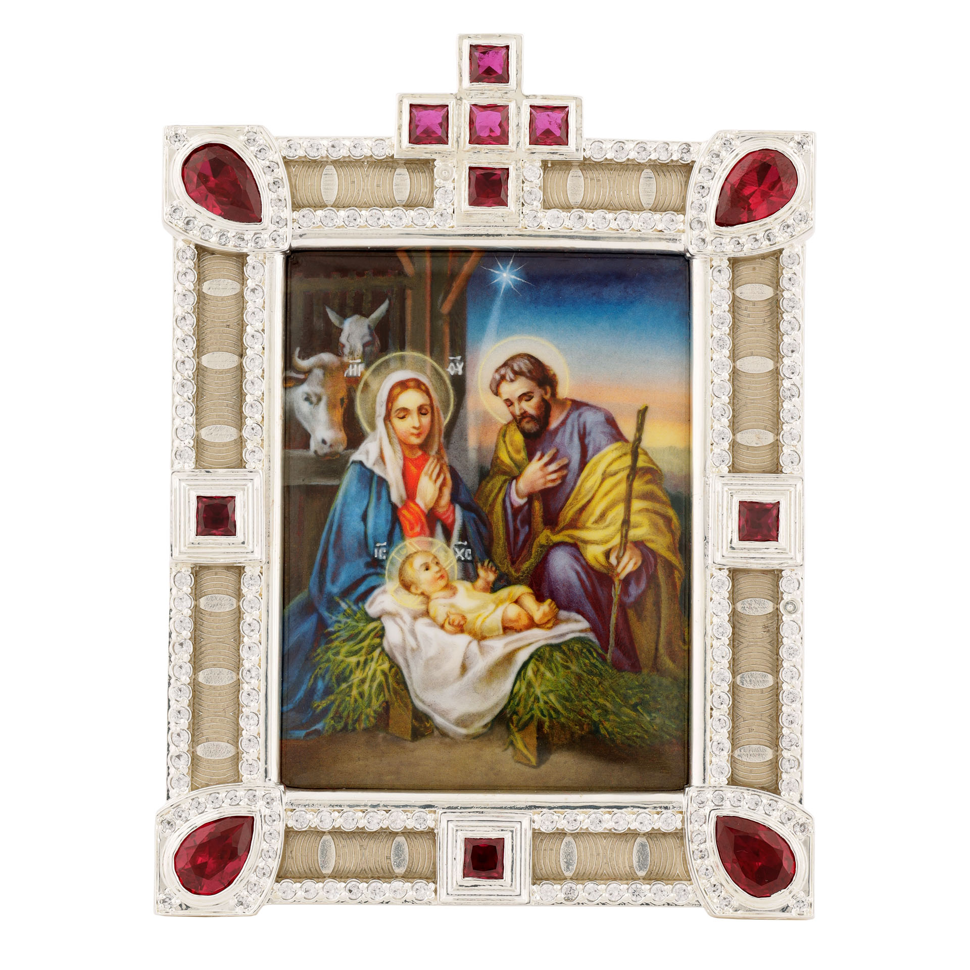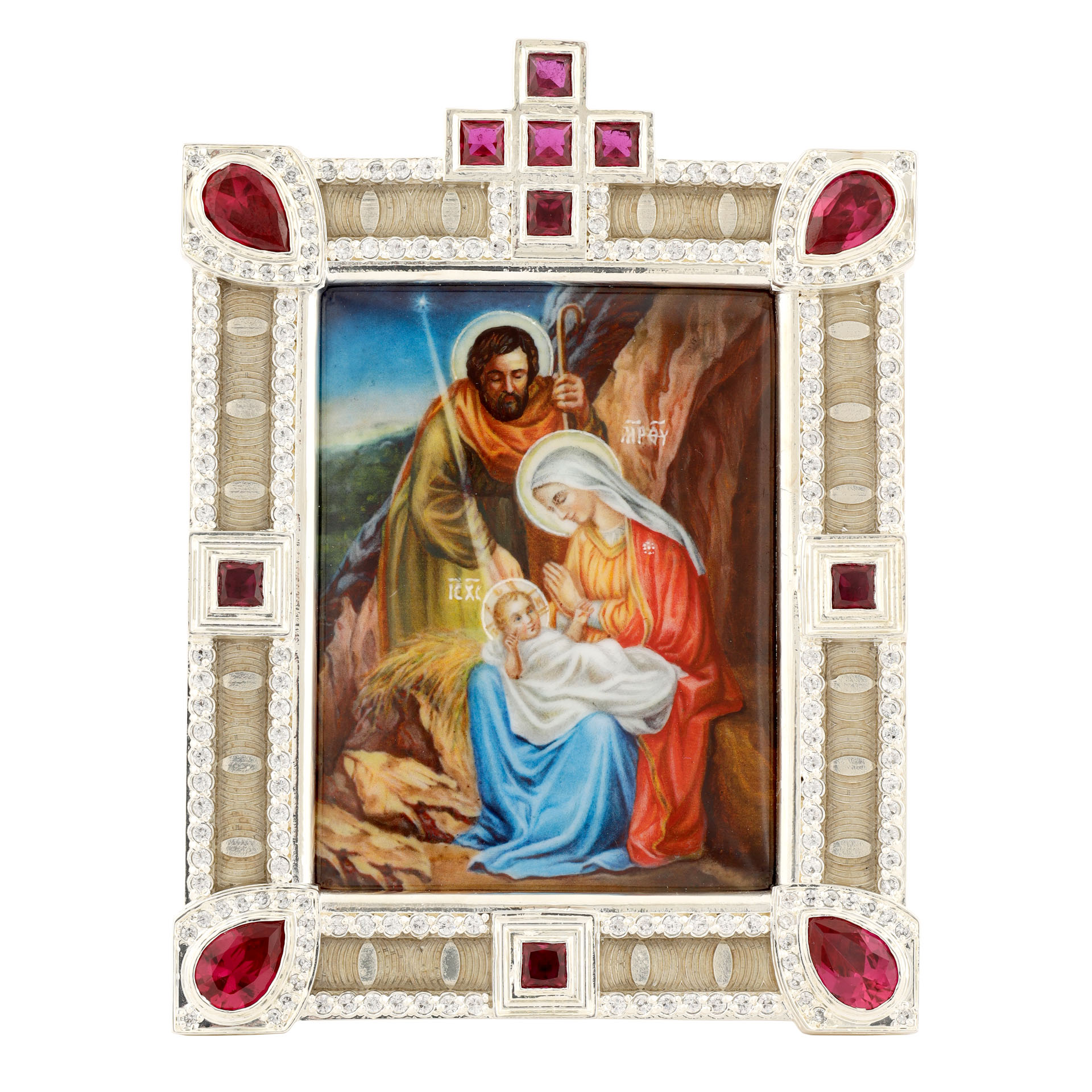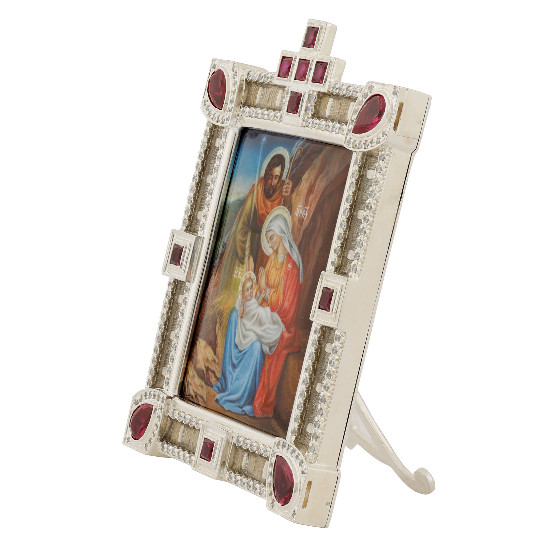 Икона настольная №155 / Фианиты деколь, эмаль / серебрение