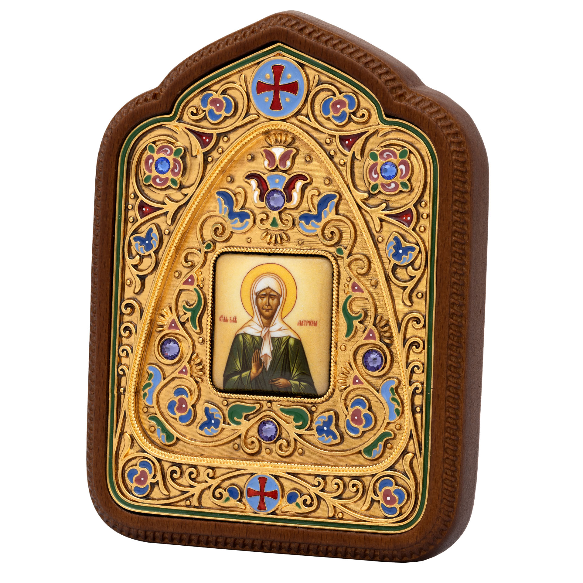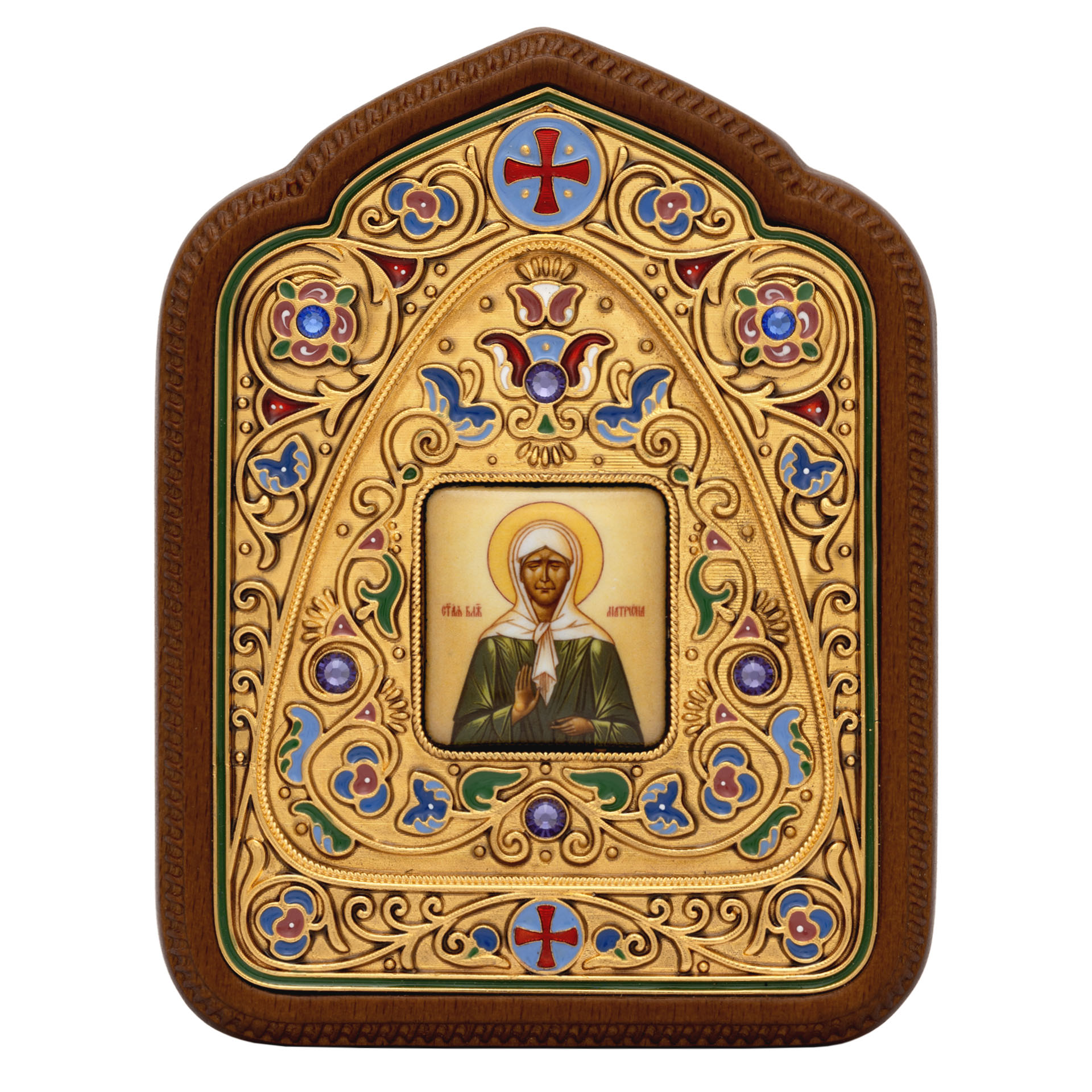 Икона настольная №156 гальванопластика, эмаль, деколь, в деревянной рамке / золочение / Матрона