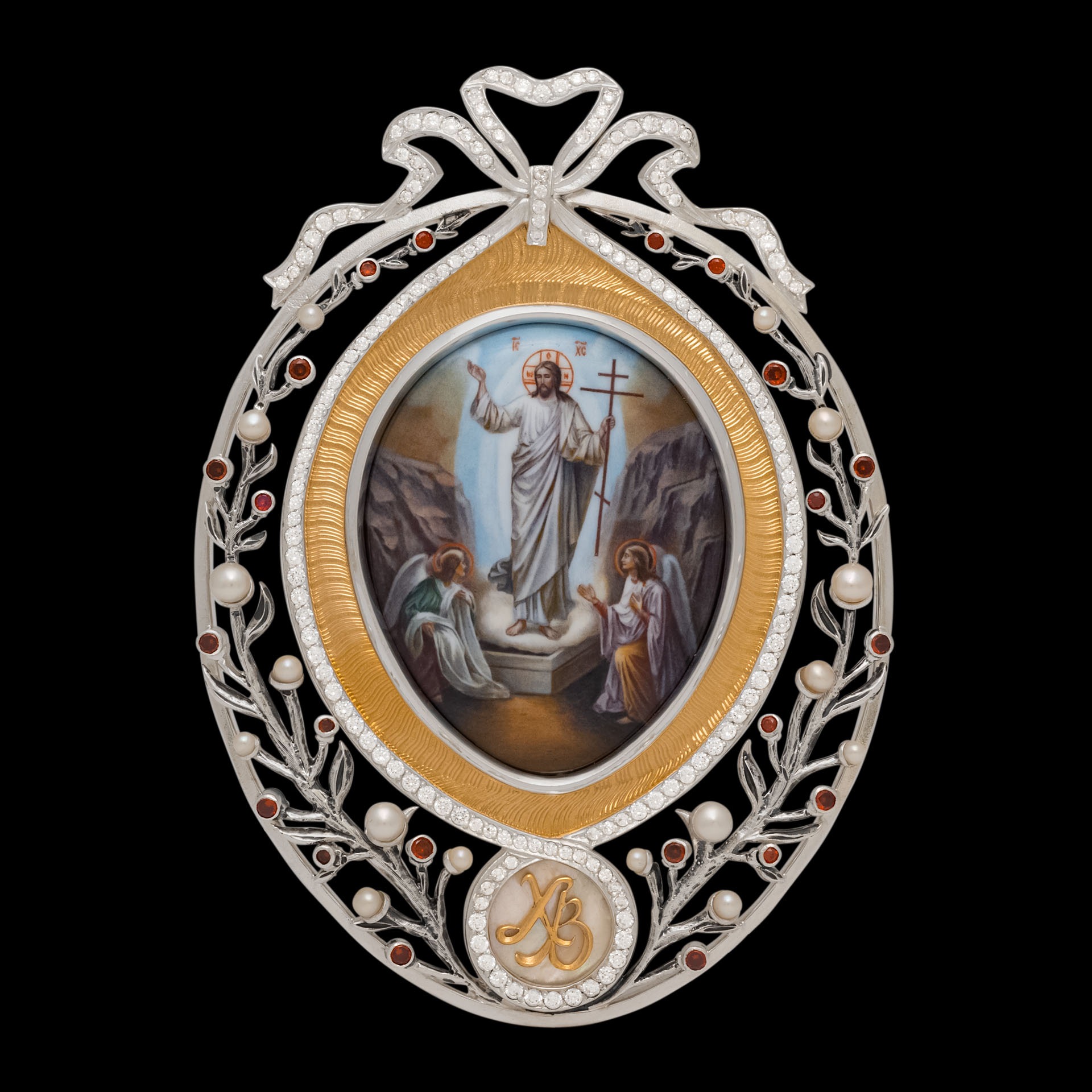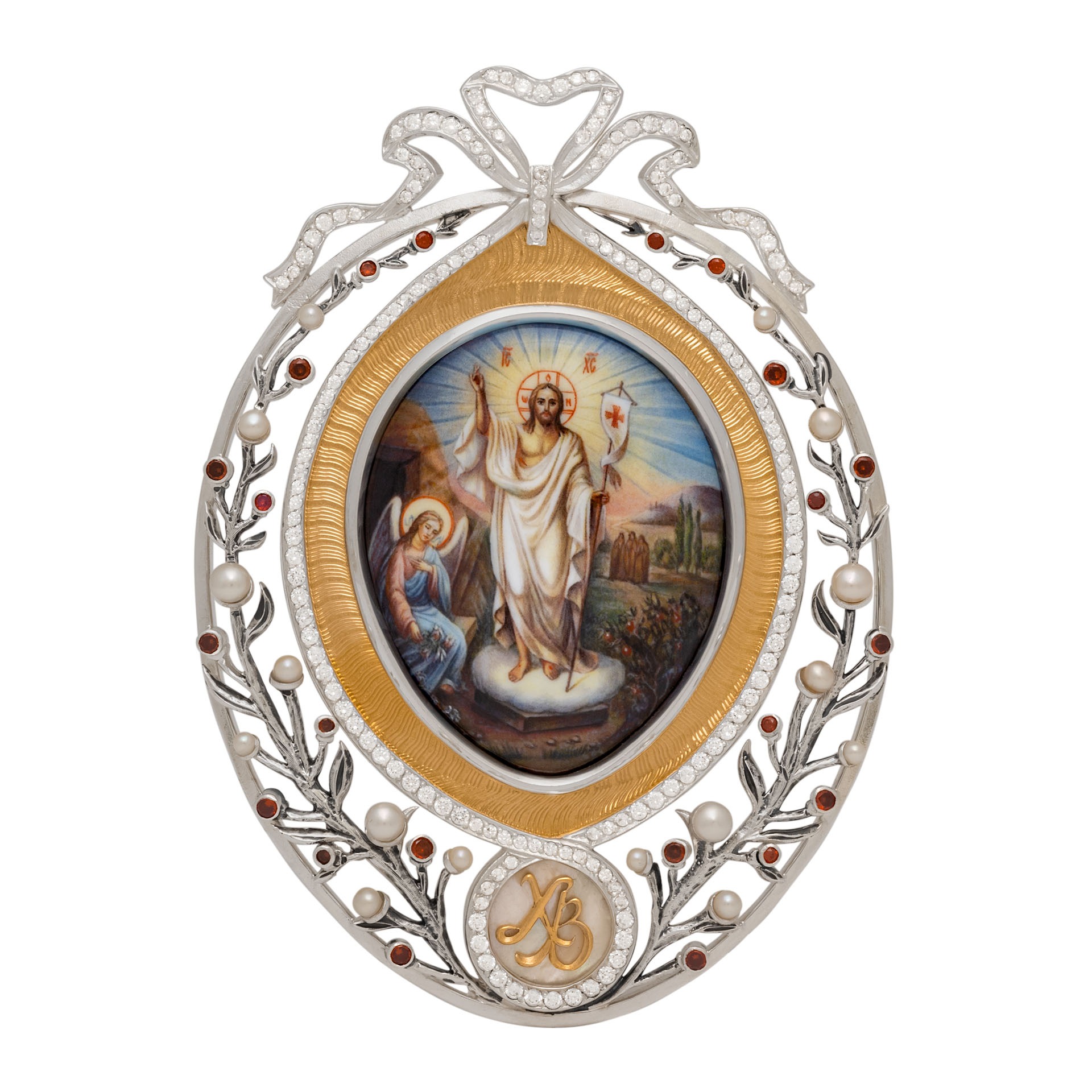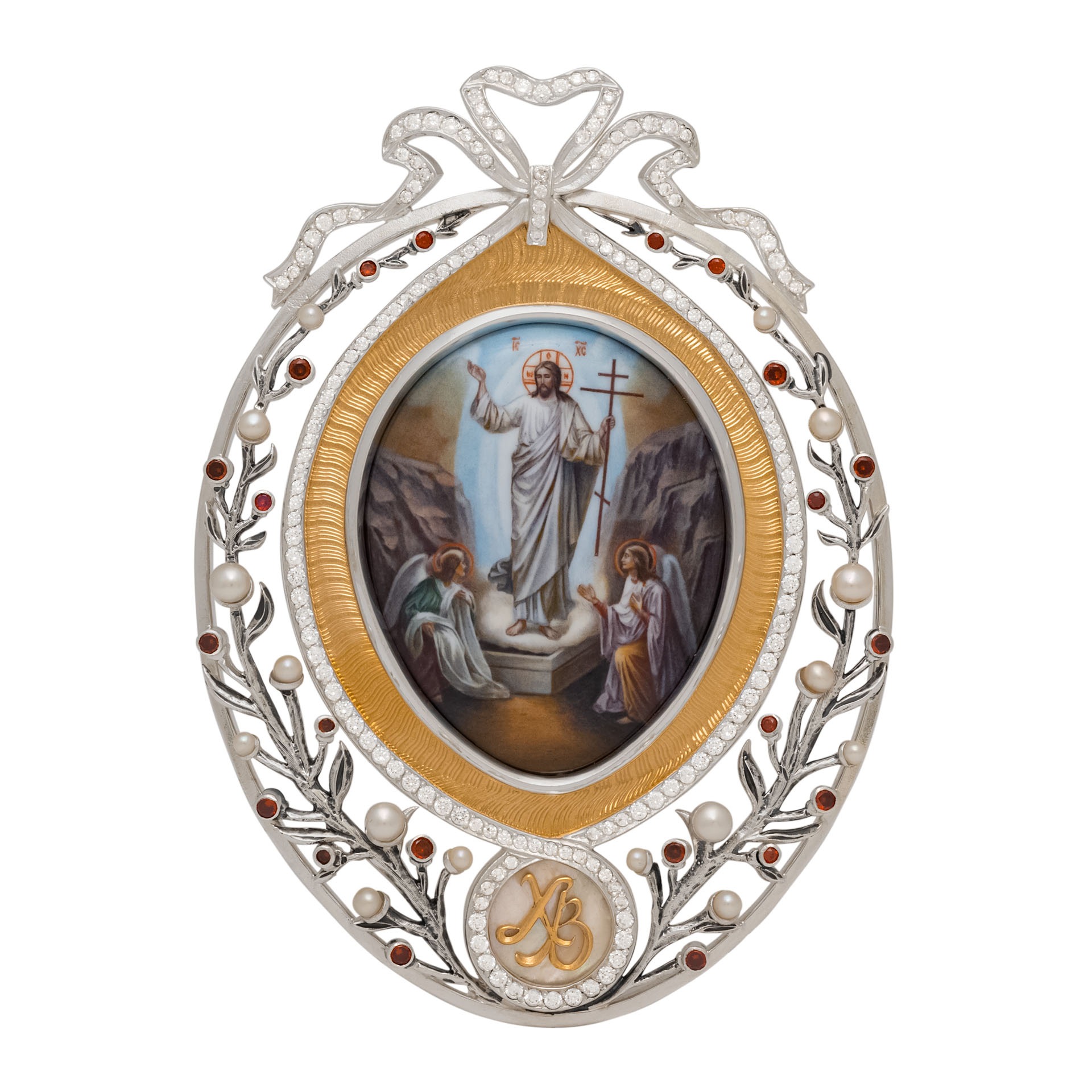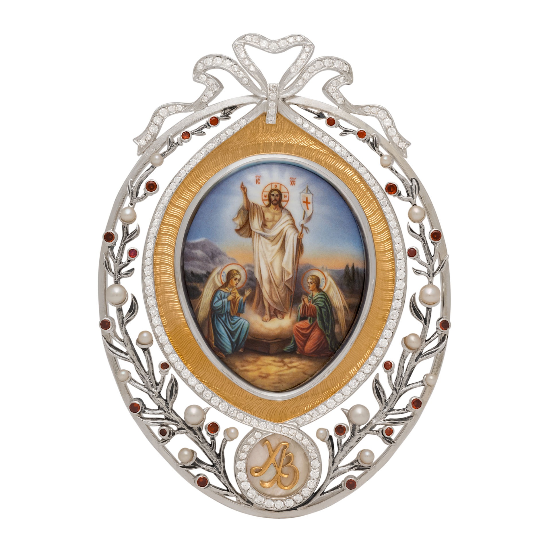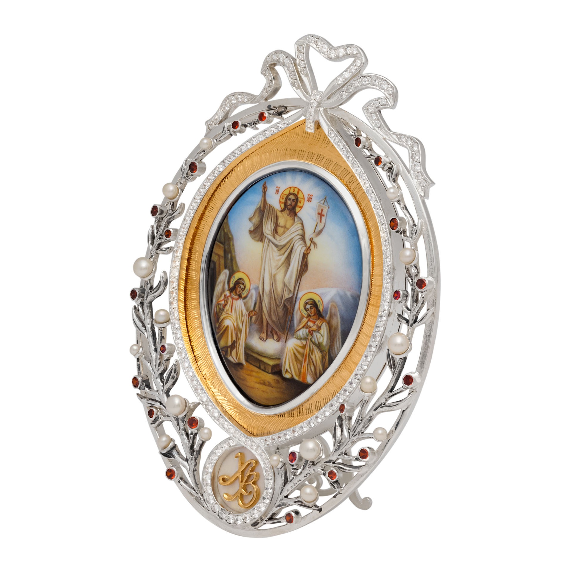 Икона настольная №158 / Фианиты серебро деколь / золочение / Воскресение Христово (УИН)