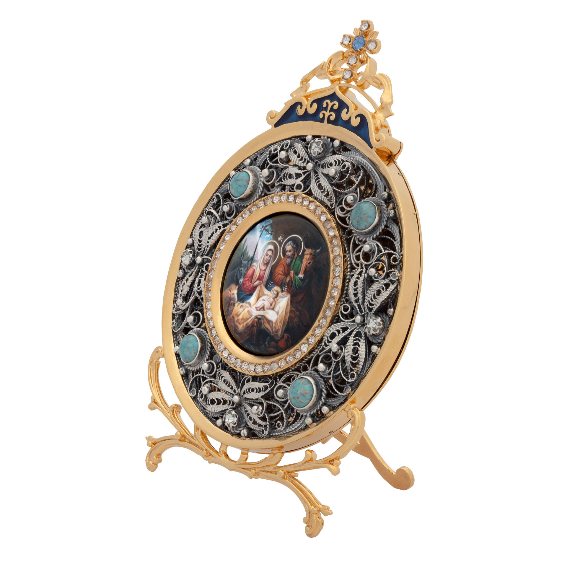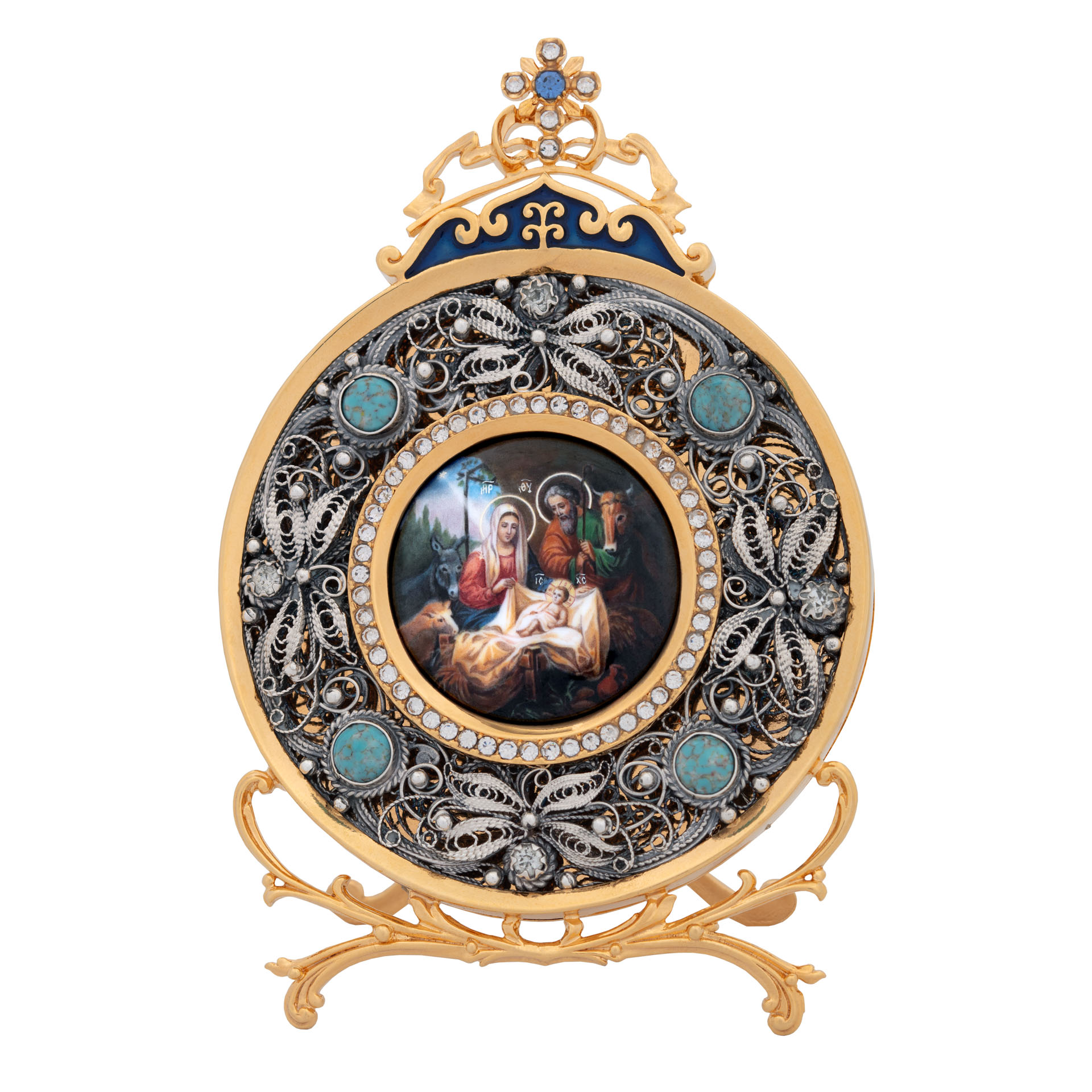 Икона настольная №162 деколь, филигрань, эмаль / золочение, серебрение / Рождество Христово,
