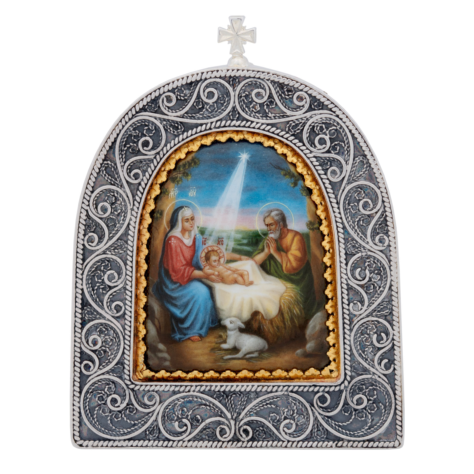 Икона настольная №163 деколь / серебрение, золочение / Рождество Христово,