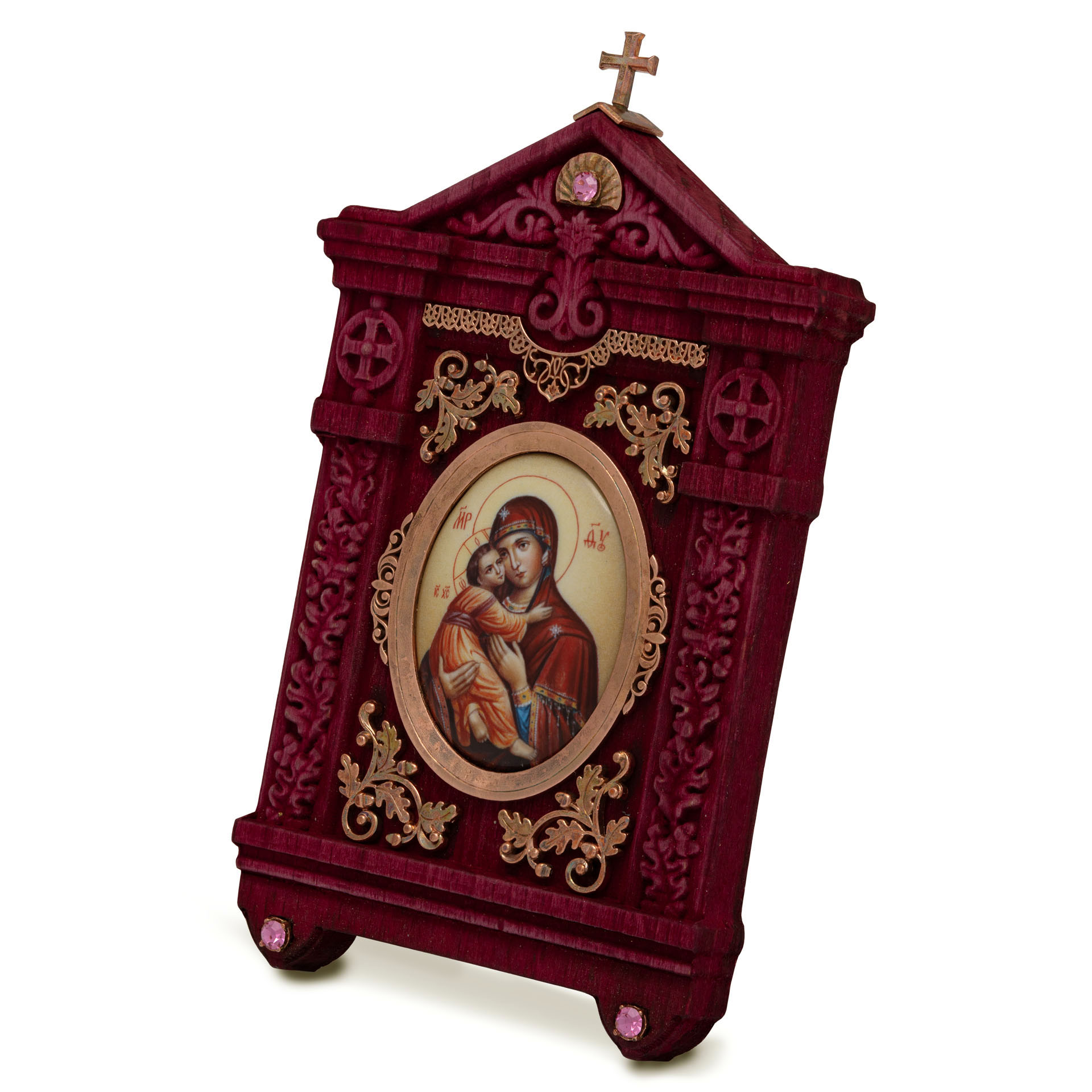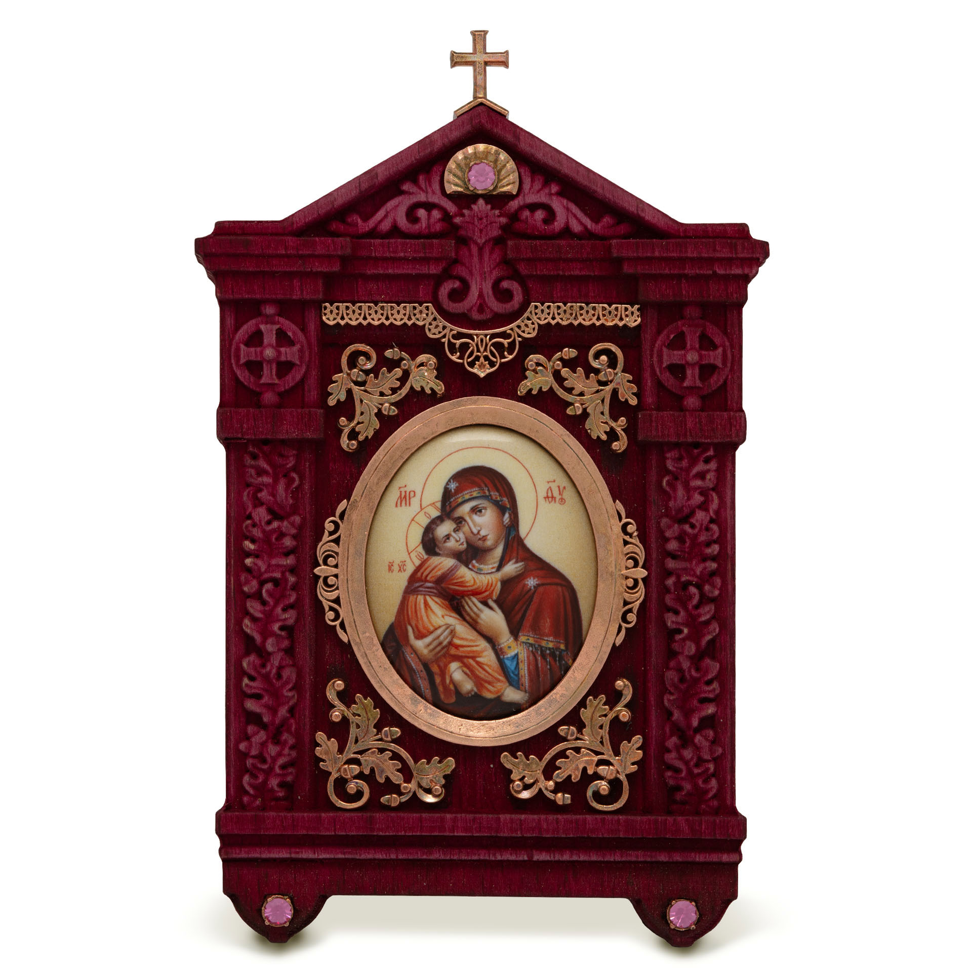 Икона настольная №170 деколь в деревянной рамке / меднение / Владимирская БМ,