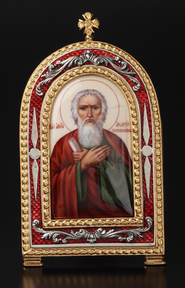 Икона настольная №3 финифть, эмаль / золочение / Андрей Первозванный