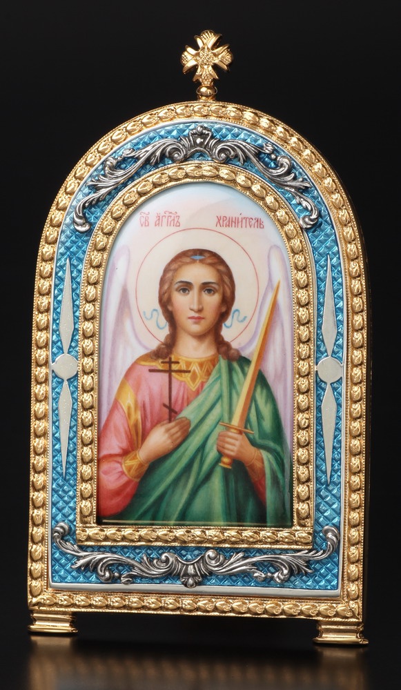 Икона настольная №3 финифть, эмаль / золочение / Ангел-Хранитель