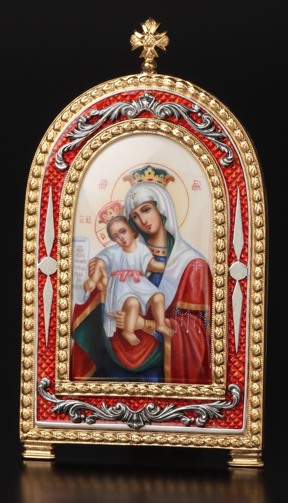 Икона настольная №3 финифть, эмаль / золочение / Достойно Есть