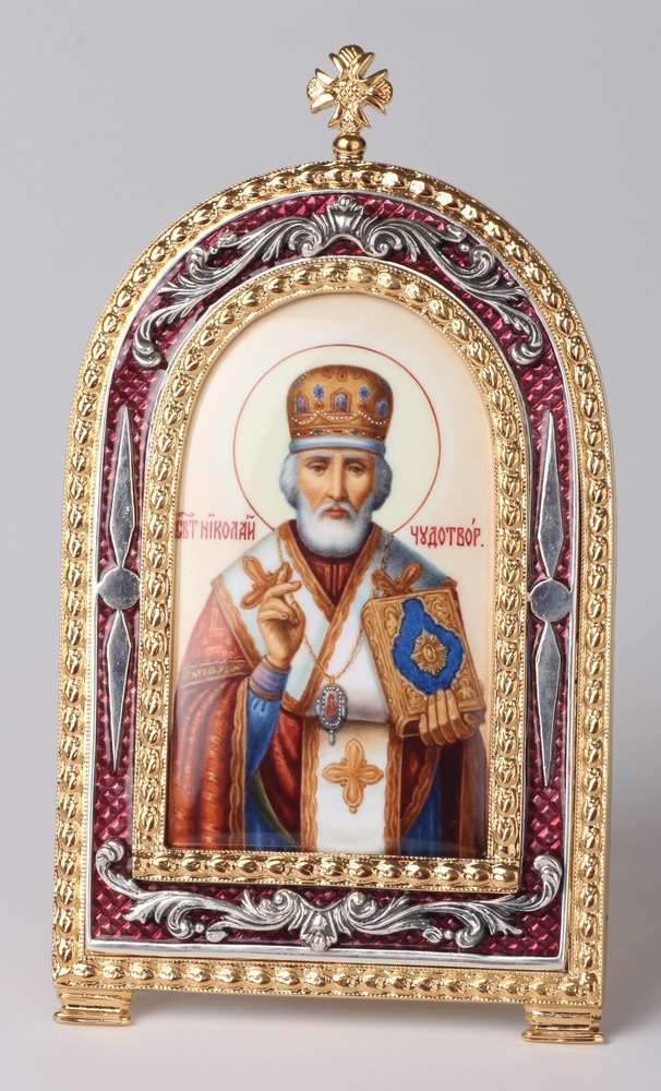 Икона настольная №3 финифть, эмаль / золочение / Николай Чудотворец