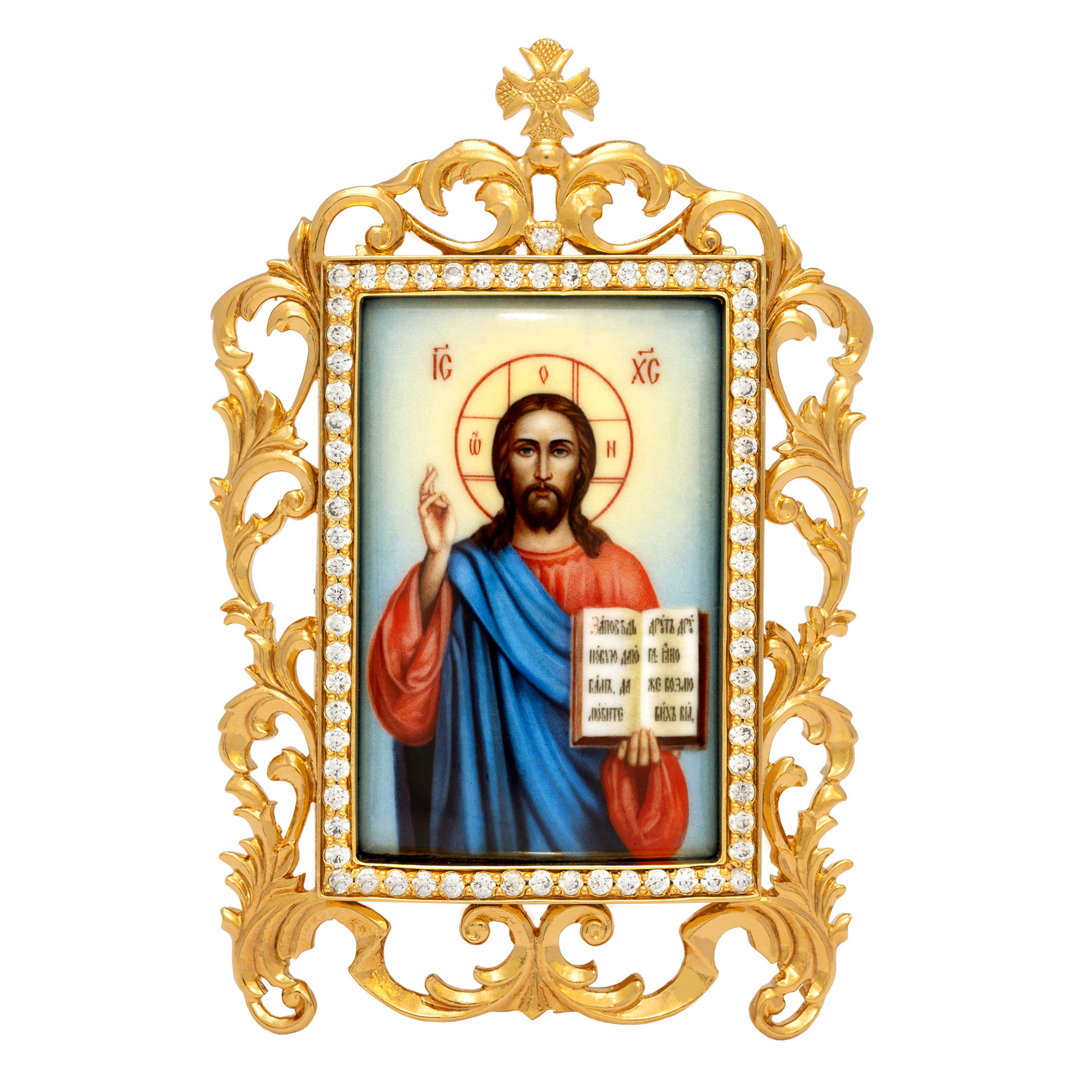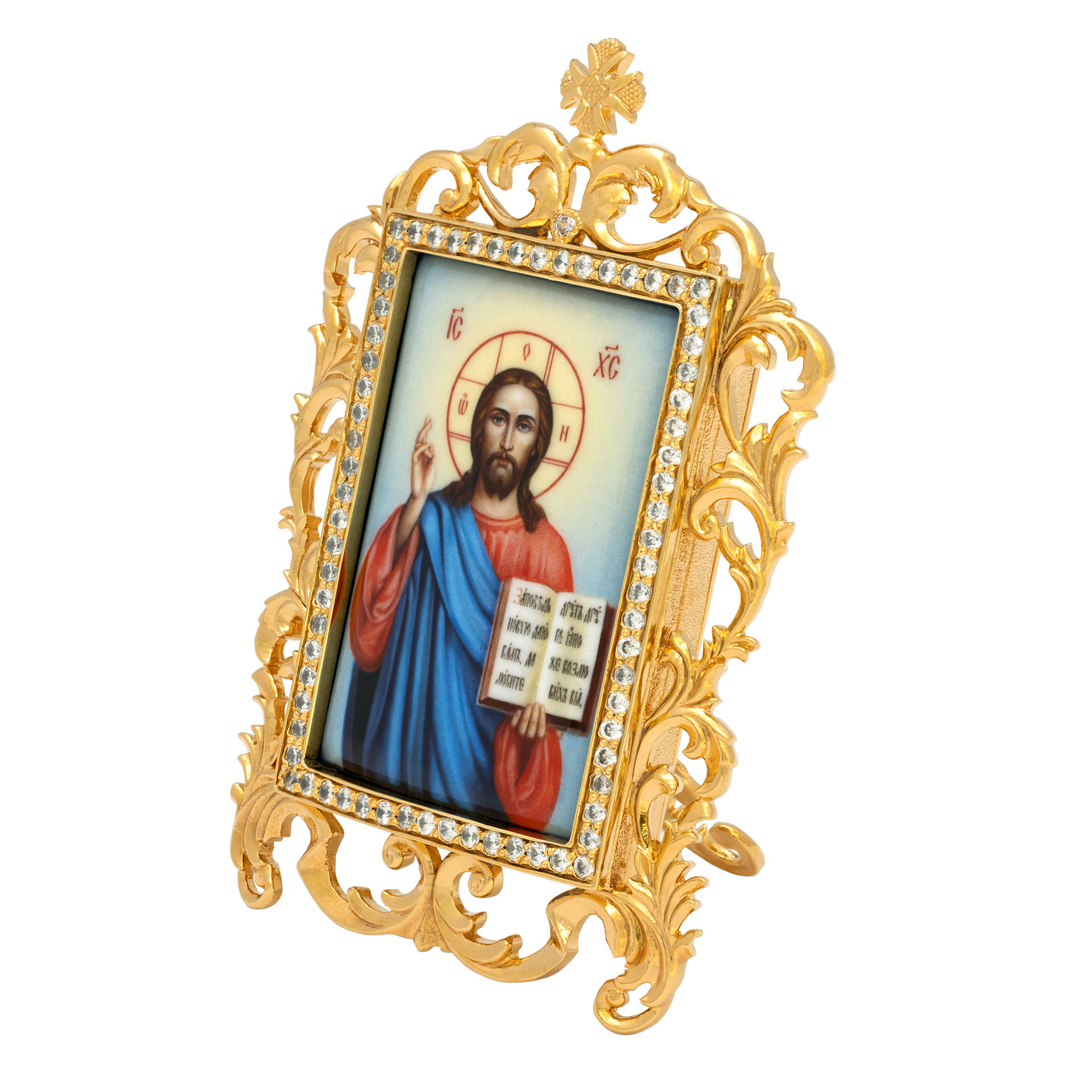Икона настольная №52 / Фианиты деколь / золочение / Господь Вседержитель