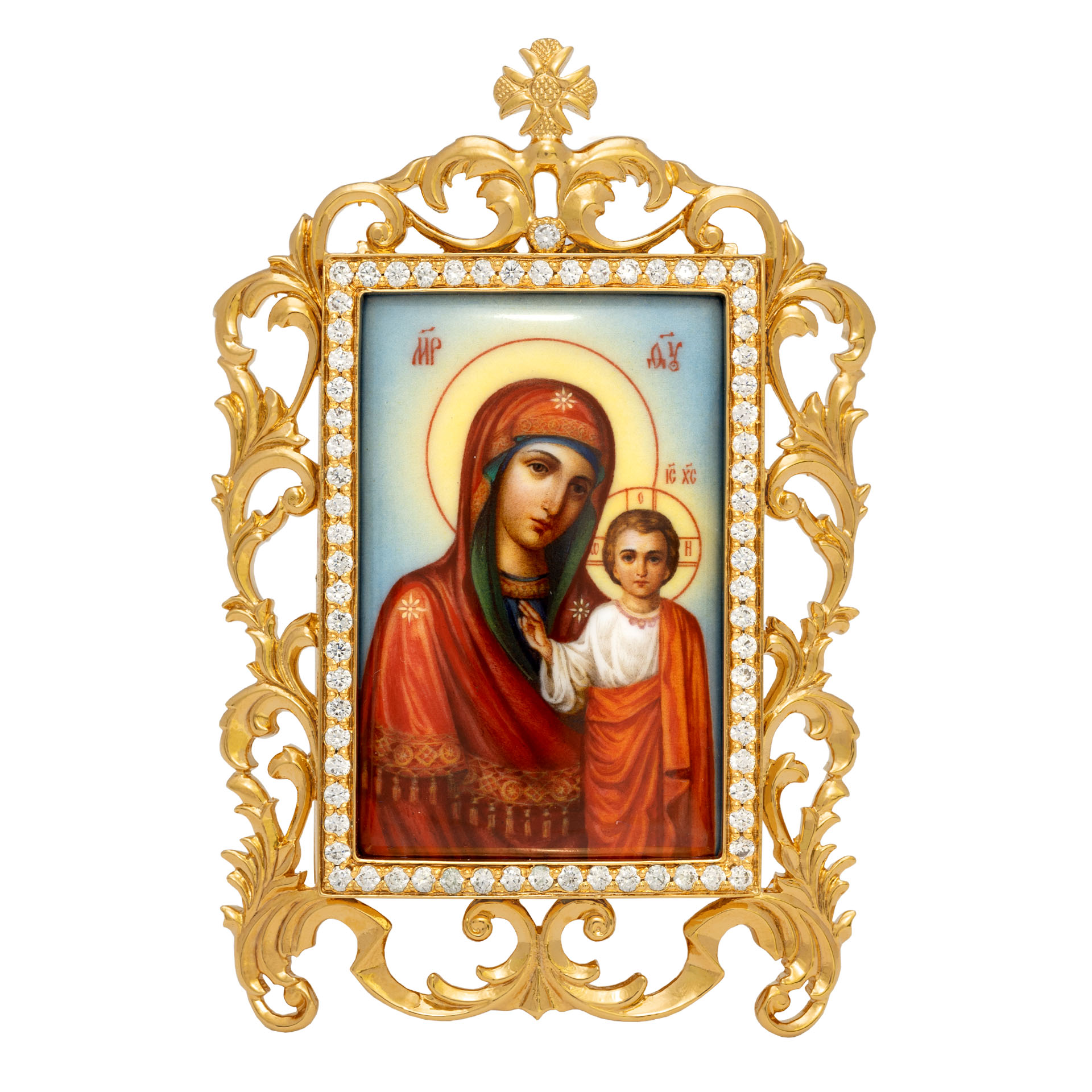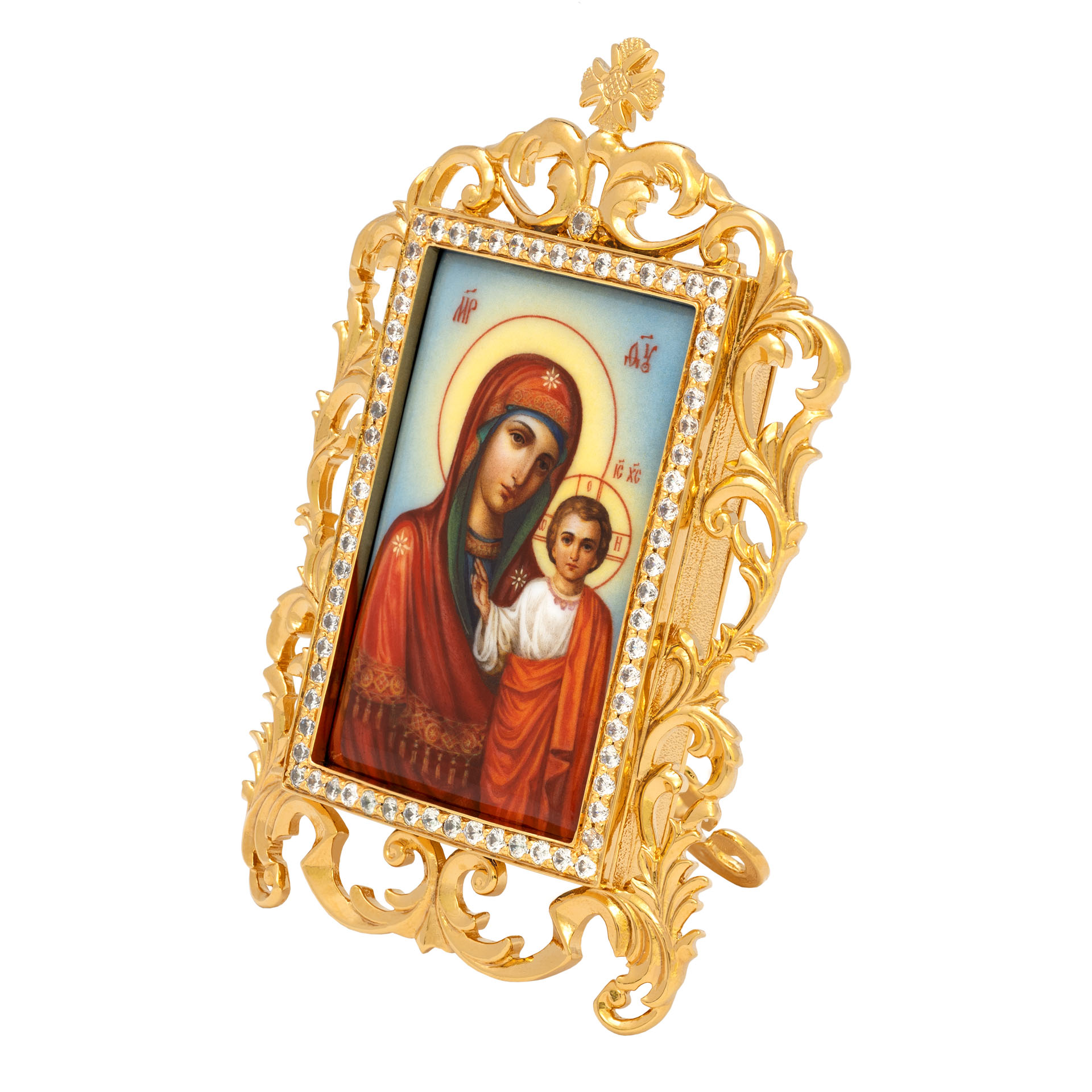 Икона настольная №52 / Фианиты деколь / золочение / Казанская БМ
