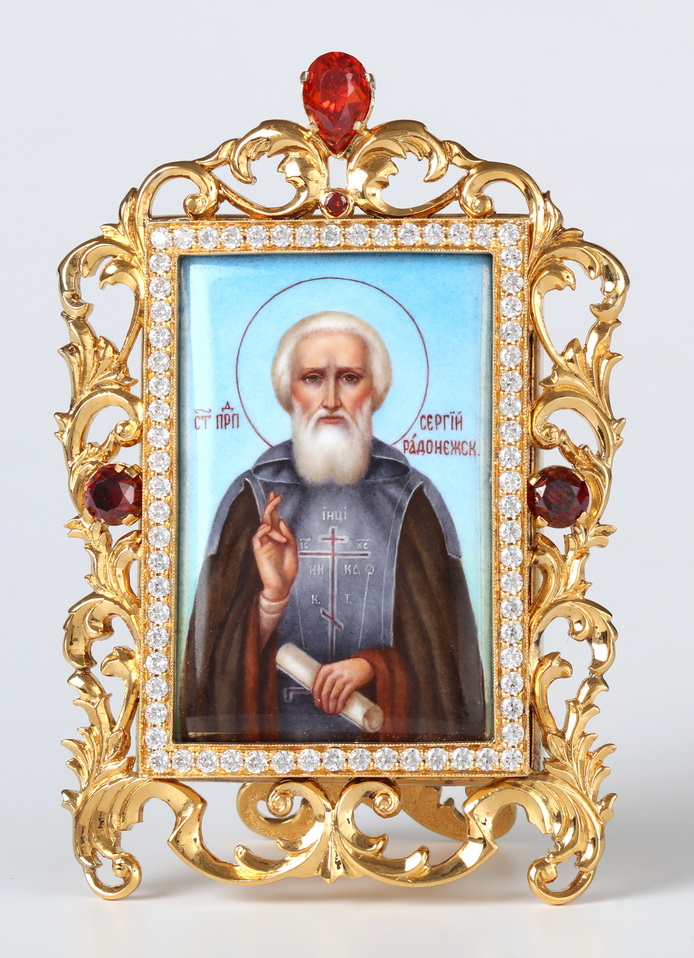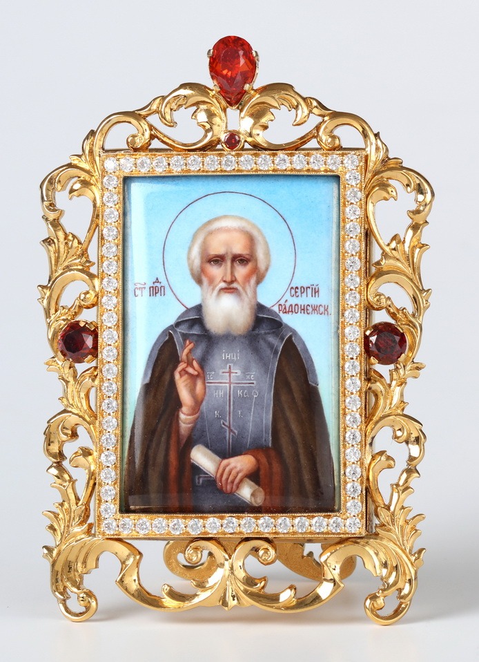 Икона настольная №52 серебро финифть / золочение / Сергий Радонежский (УИН)