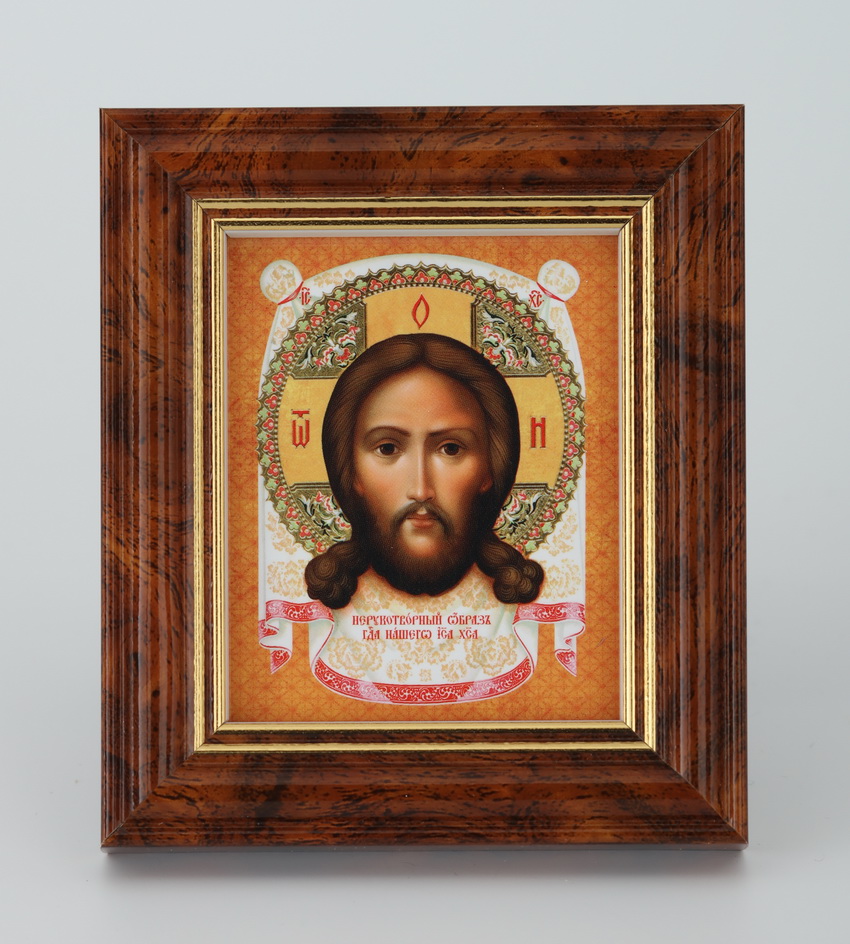 Икона Спас Нерукотворный в багетной рамке сможет занять центральное место в домашнем иконостасе.