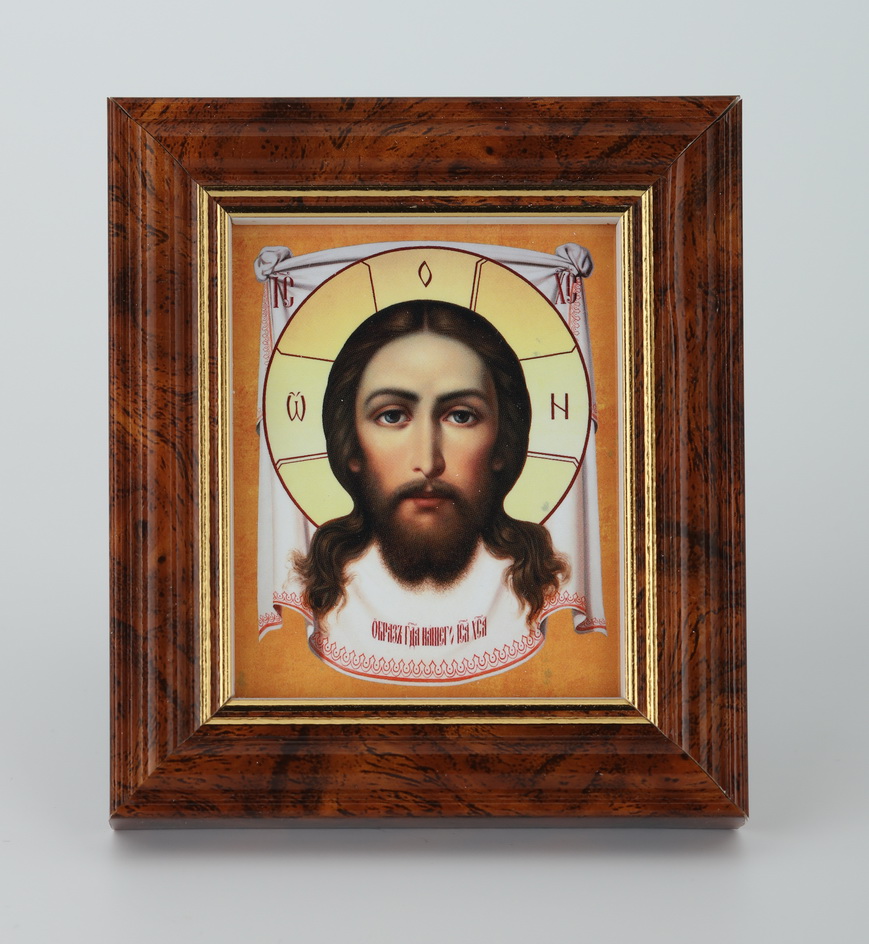 Икона Спас Нерукотворный в багетной рамке сможет занять центральное место в домашнем иконостасе.