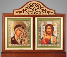 Икона настольная 6х7 двойная, двойное тиснение, золоченая рамка Спаситель-Казанская БМ 10