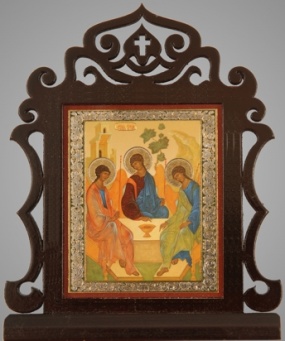 Икона настольная 6х7 двойное тиснение Троица (Рублевская)