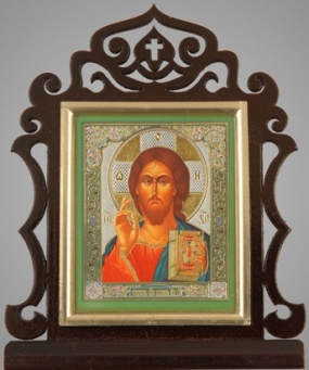 Икона настольная 6х7 двойное тиснение, золоченая рамка Спаситель