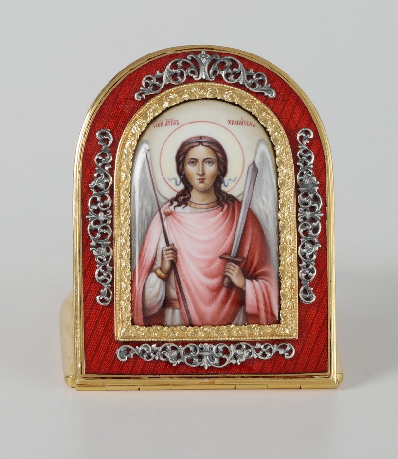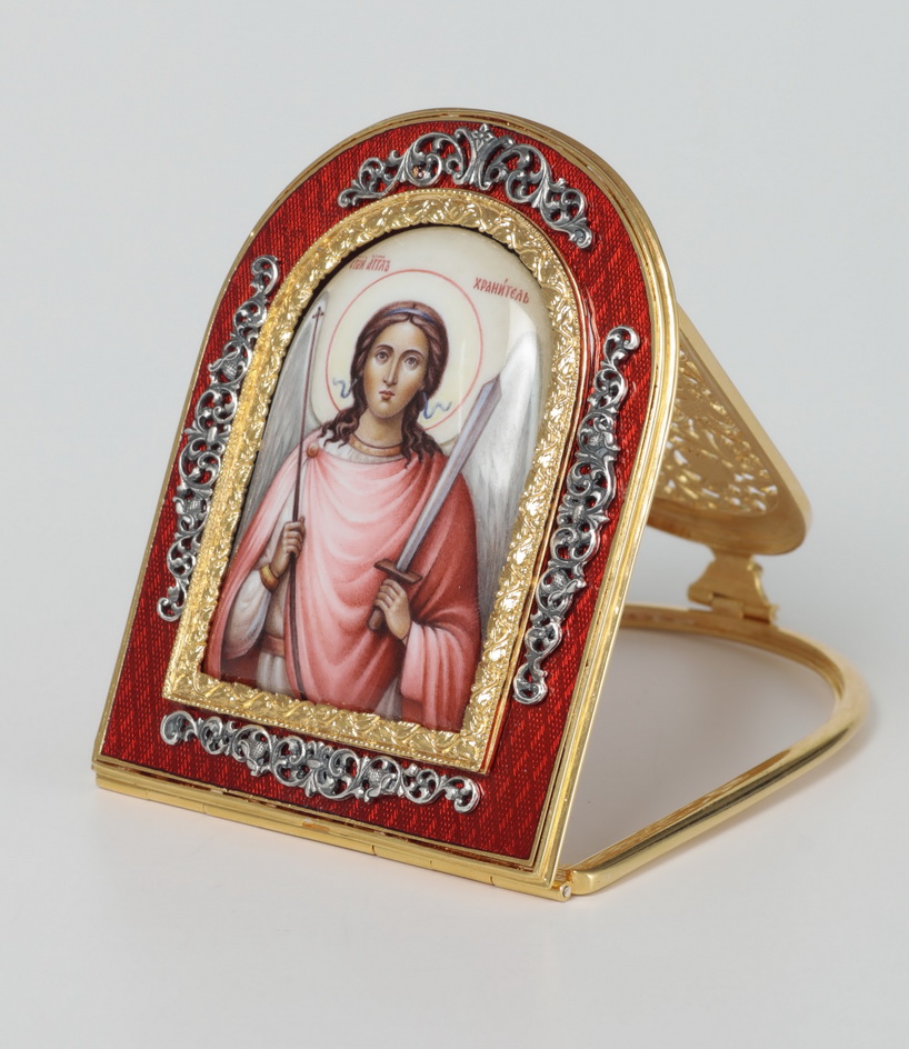 Икона настольная №9 / 1 серебро финифть, эмаль / золочение / Ангел-Хранитель (УИН)
