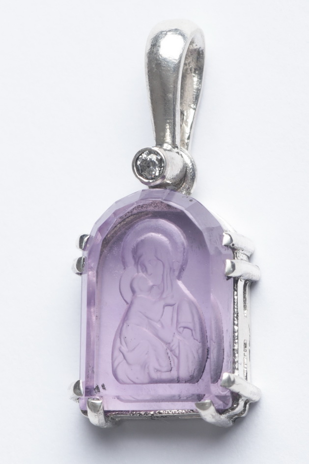 Икона нательная №18 инталия арка 10*14 аметист серебро Владимирская БМ (УИН)