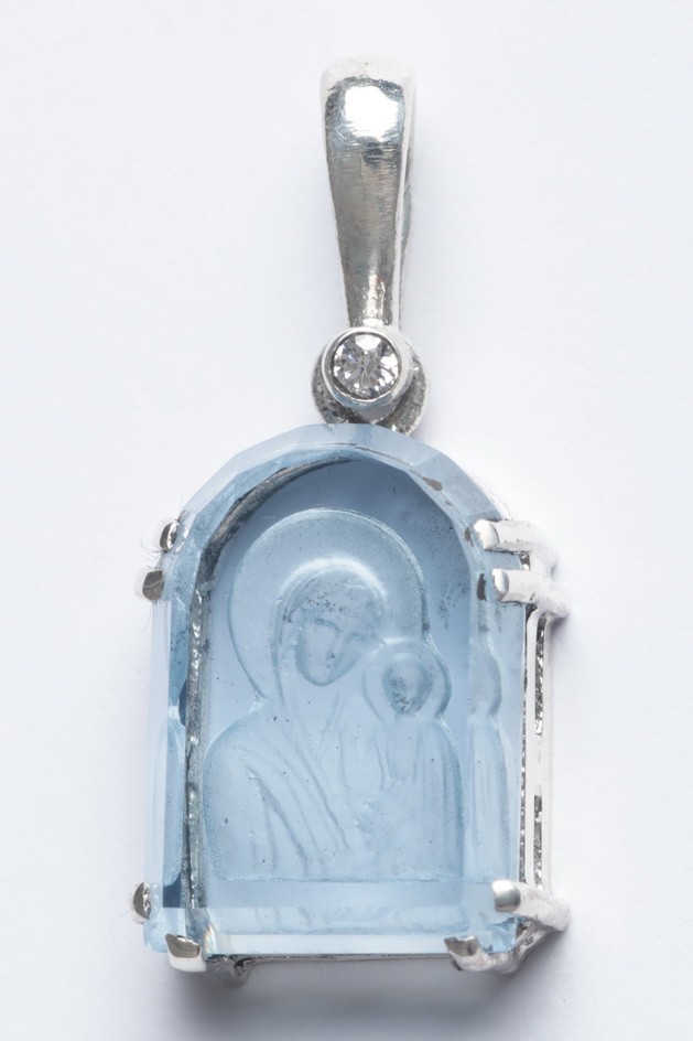 Икона нательная №19 инталия арка 11*16 нано-топаз серебро Казанская БМ (УИН)