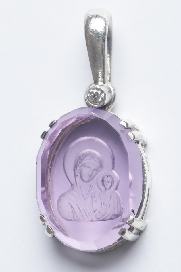 Икона нательная №20 инталия овал 12*16 аметист серебро