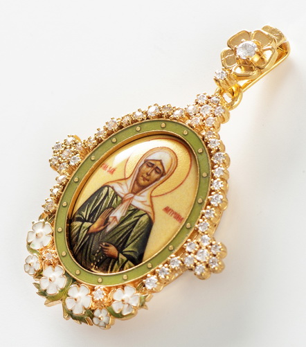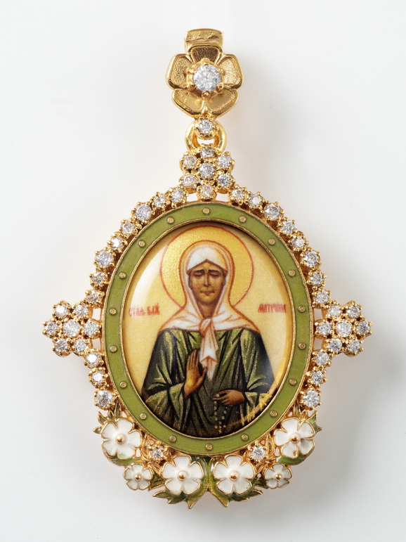 Икона нательная №29 / золочение / серебро деколь, эмаль Матрона (УИН)