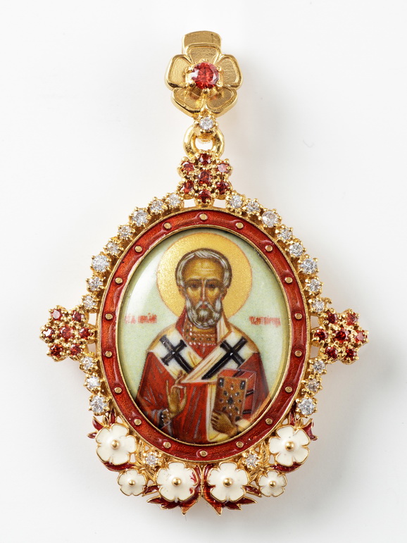 Икона нательная №29 / золочение / серебро деколь, эмаль Николай Чудотворец (УИН)