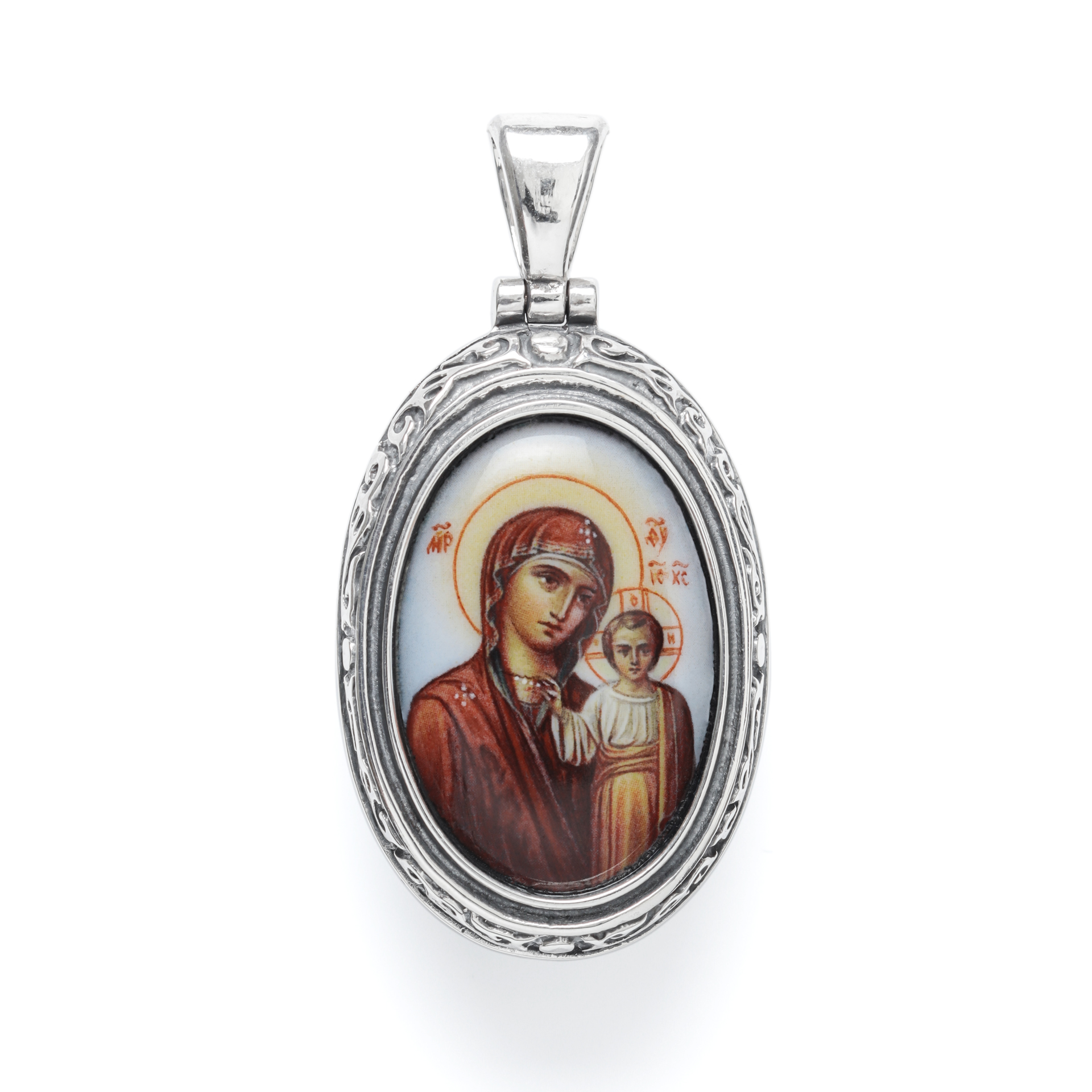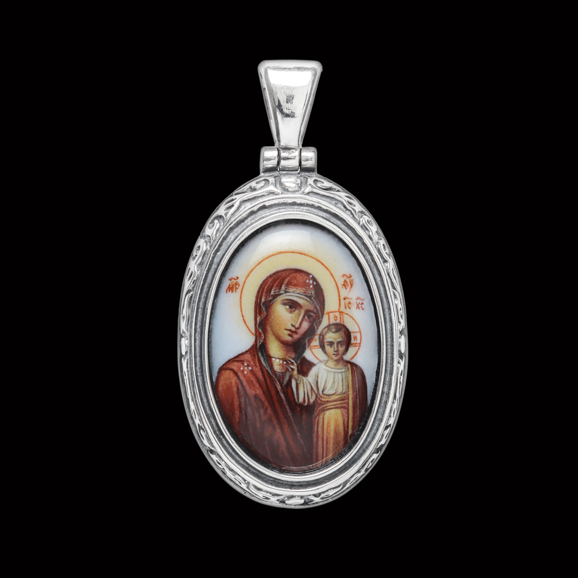 Икона нательная №34 серебро деколь Казанская БМ (УИН)