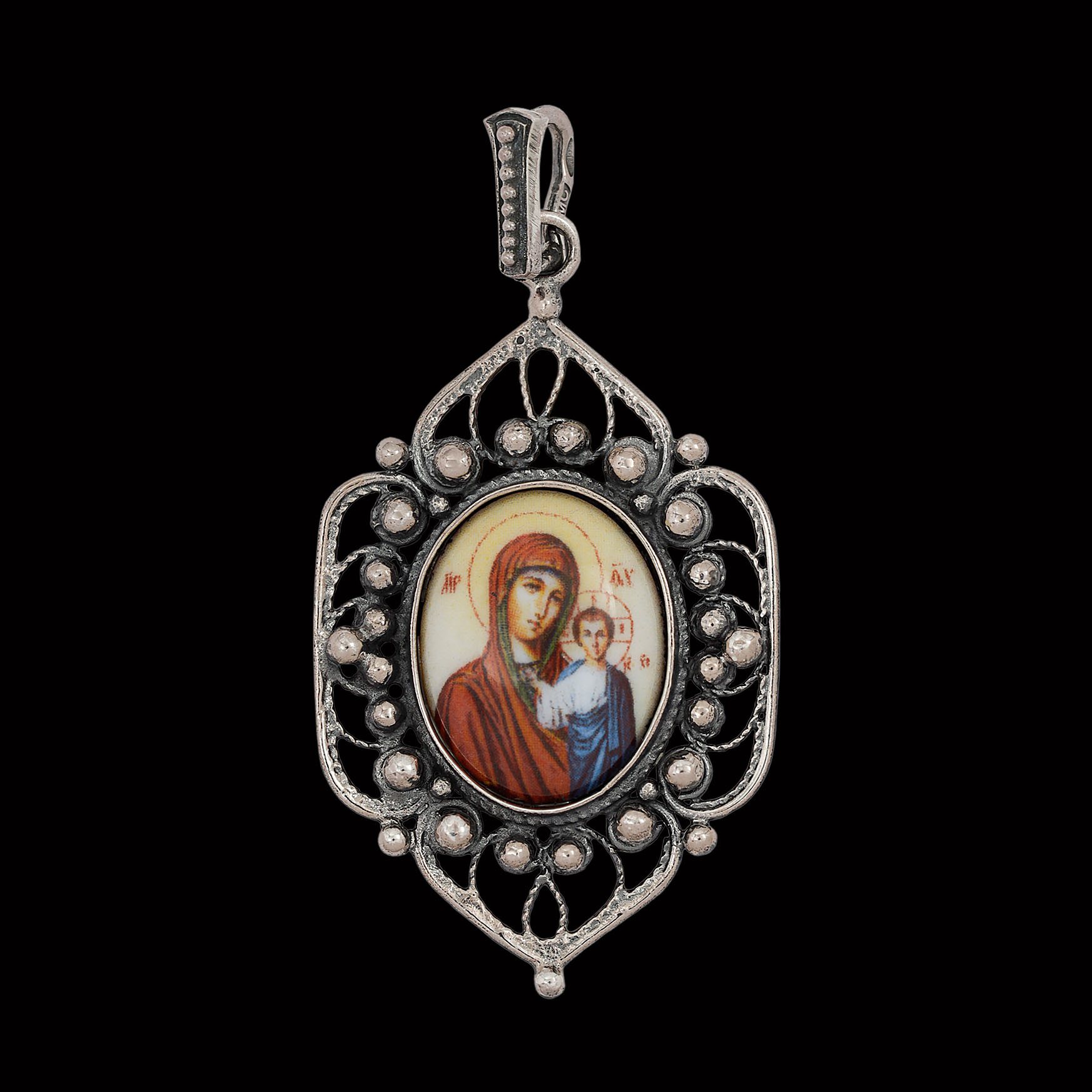 Икона нательная №38 серебро деколь Казанская БМ (УИН)