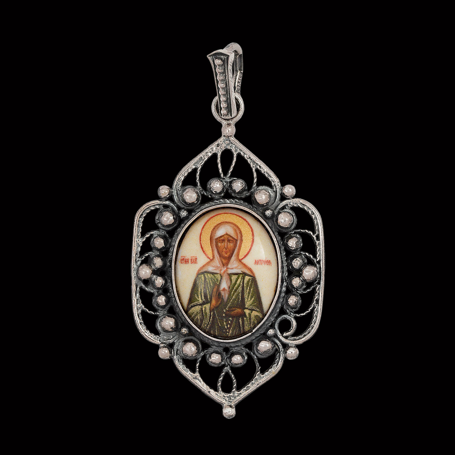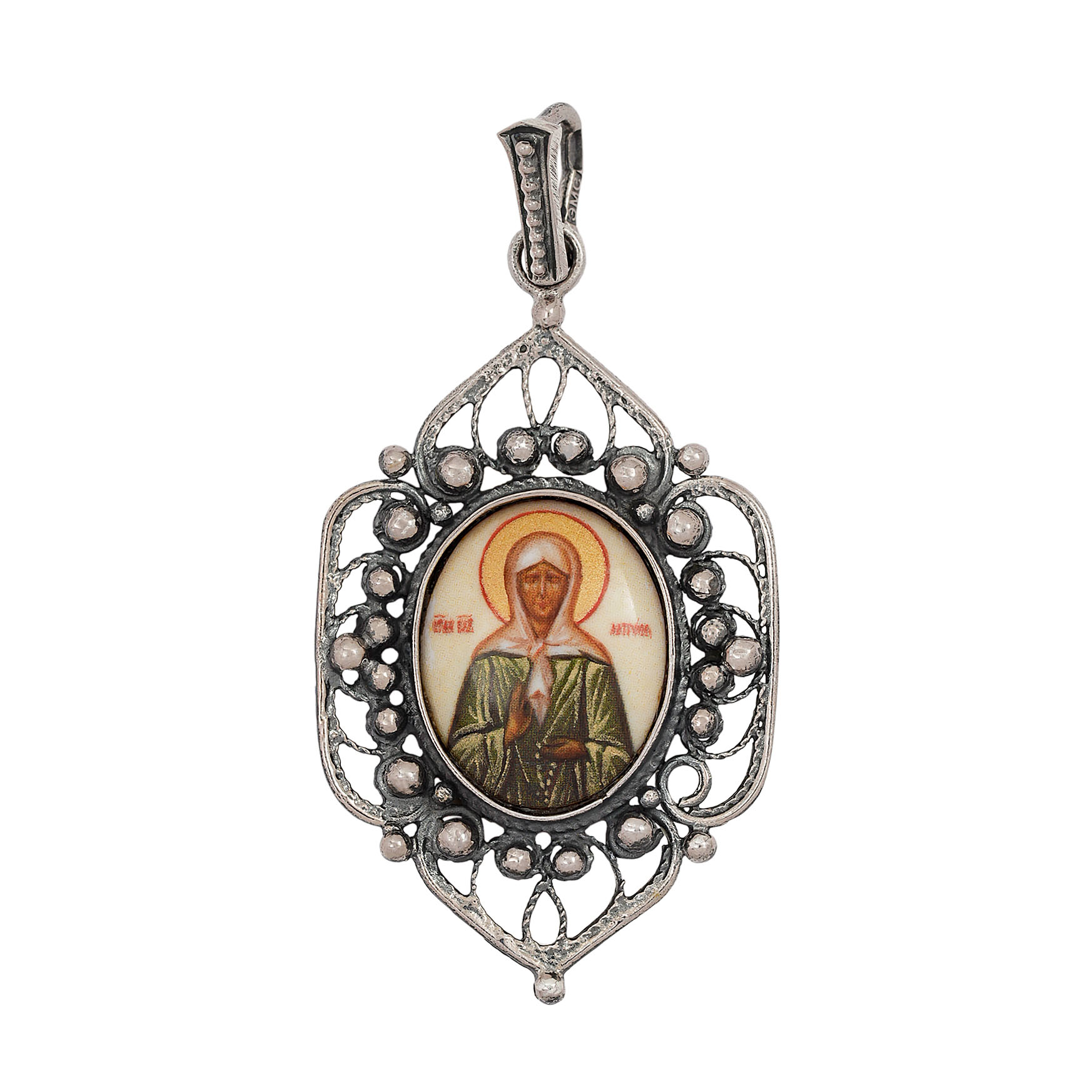 Икона нательная №38 серебро деколь Матрона (УИН)