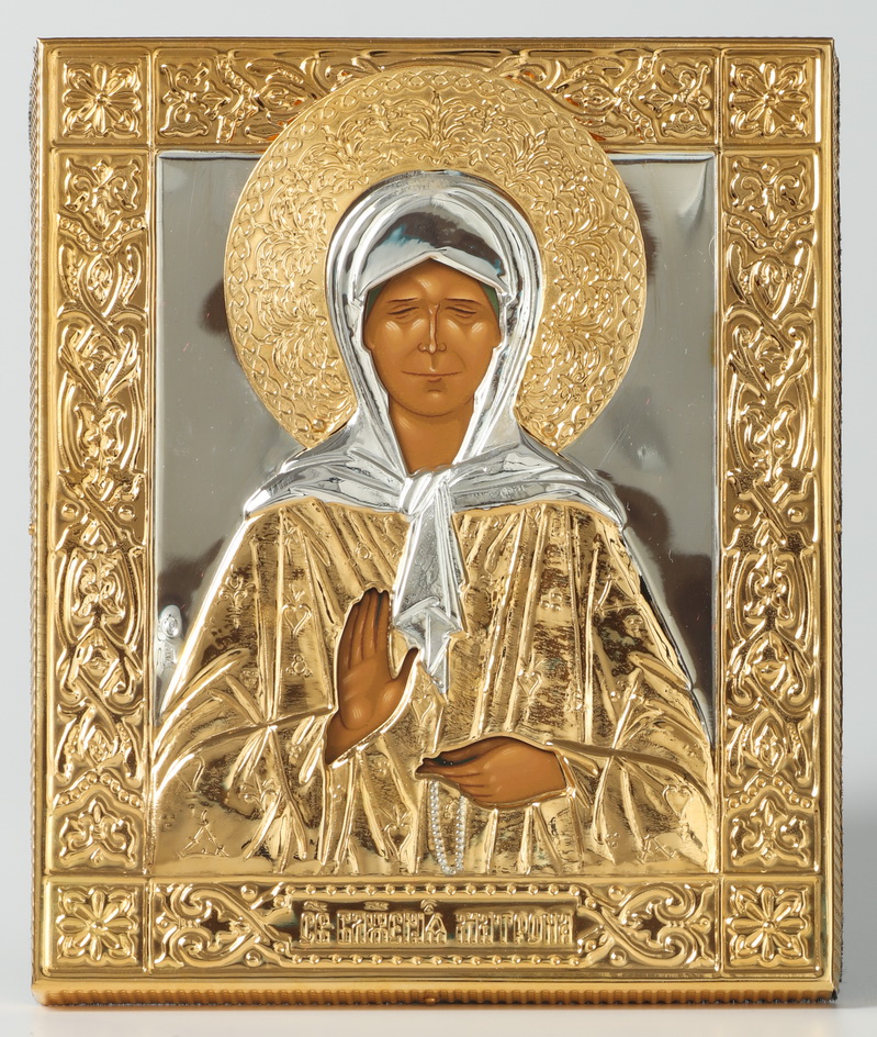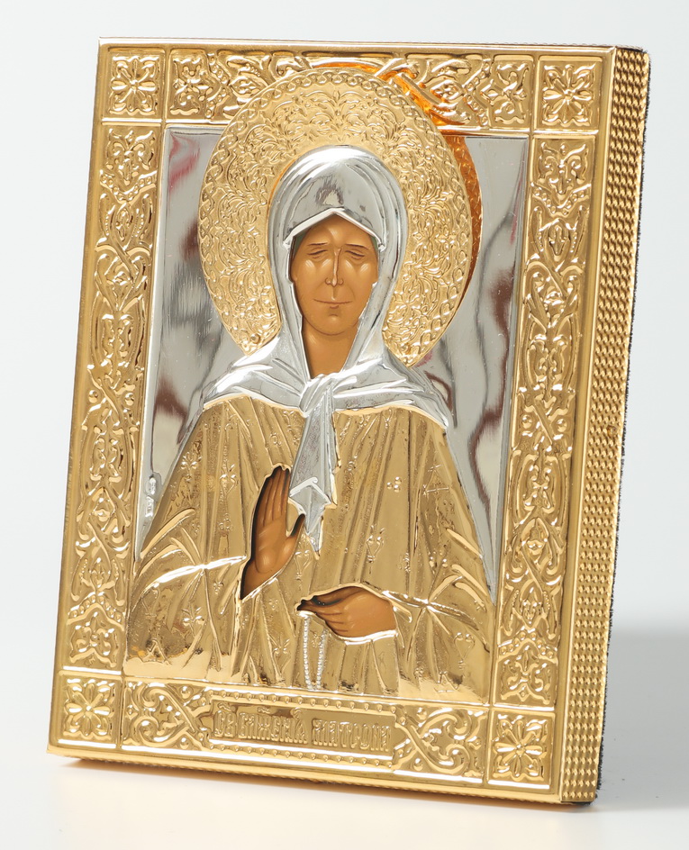 Икона штампованная 11*13 / темпера / золочение / серебро Матрона (УИН)