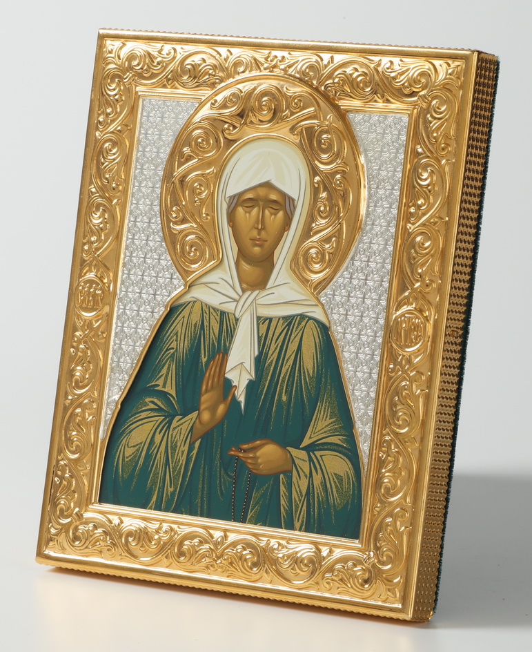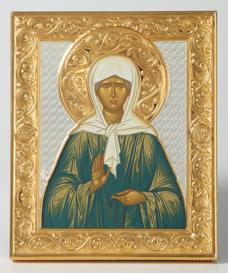 Икона штампованная 12*14 / темпера / золочение / серебро Матрона (УИН)