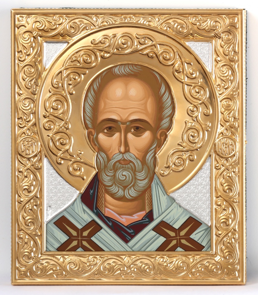 Икона штампованная 12*14 / темпера / золочение / серебро Николай Чудотворец (УИН)
