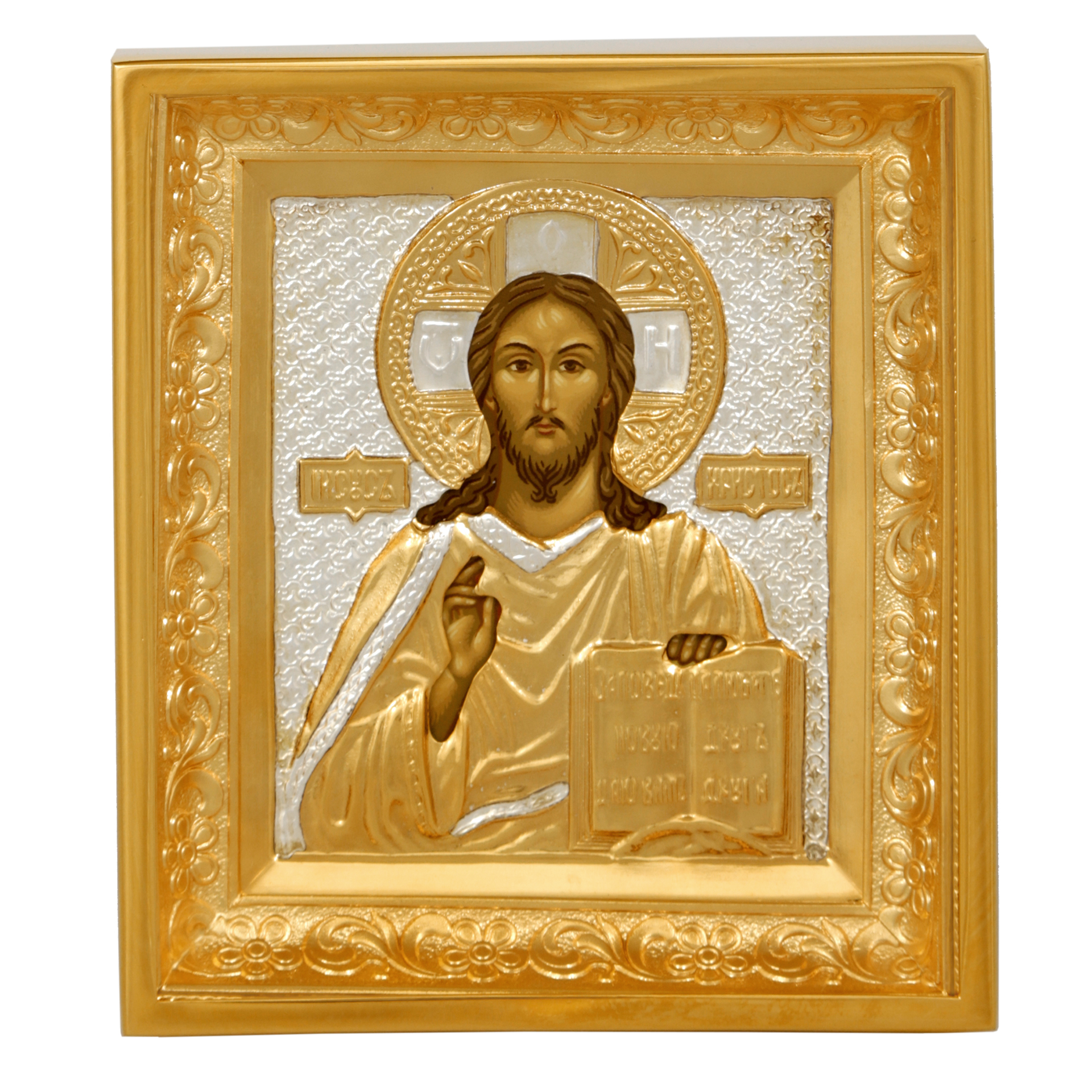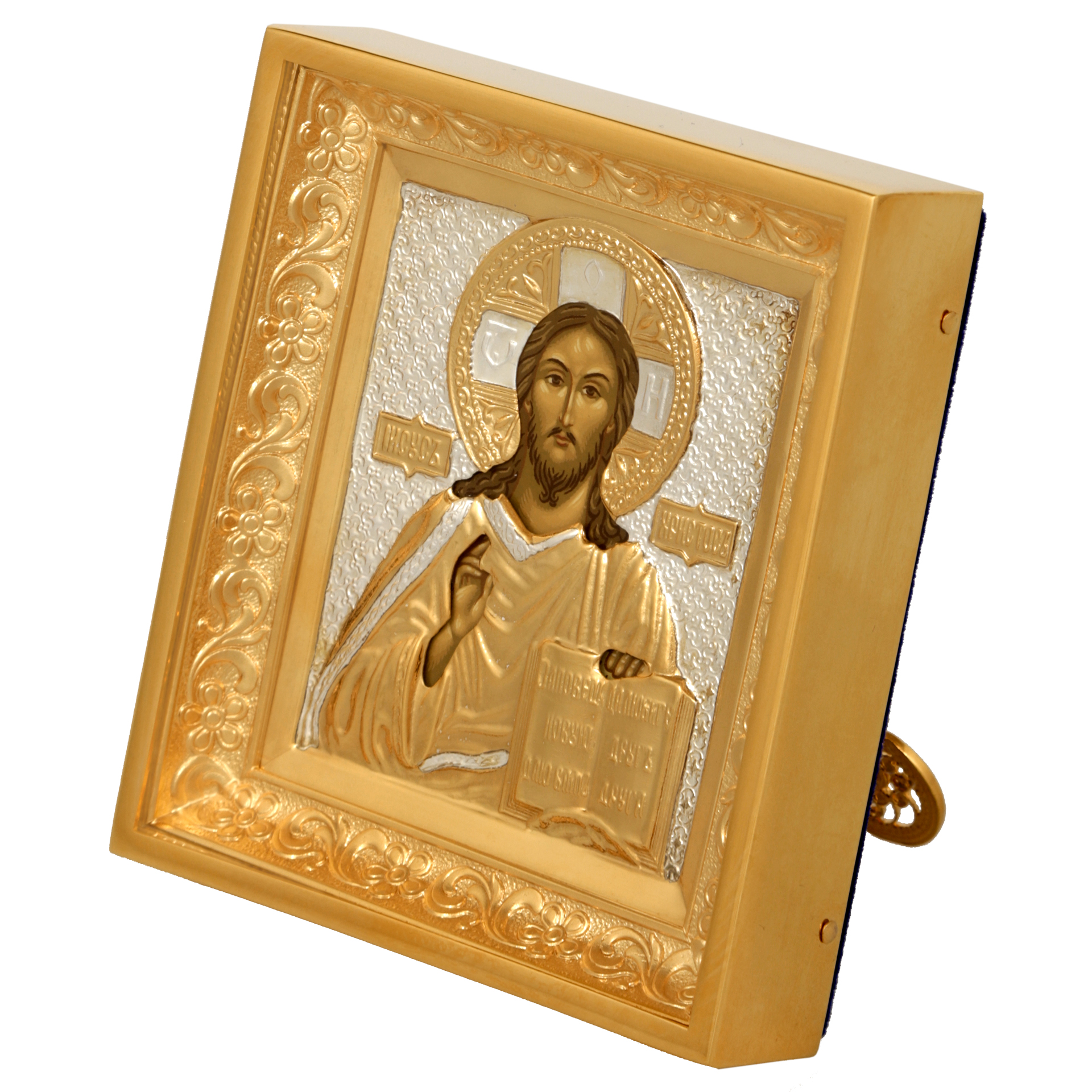 Икона штампованная 6*7 прокат в металлическом киоте на ножке / золочение, серебрение / Спаситель