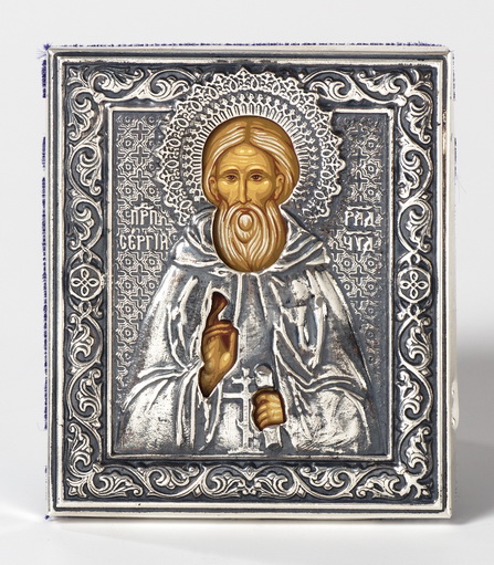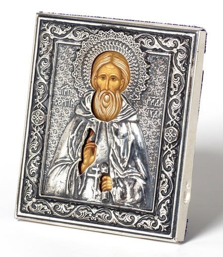 Икона штампованная 6*7 / темпера / серебро Сергий Радонежский (УИН)