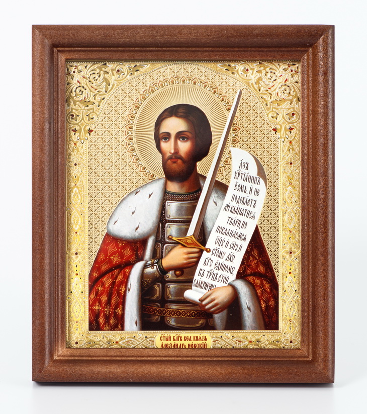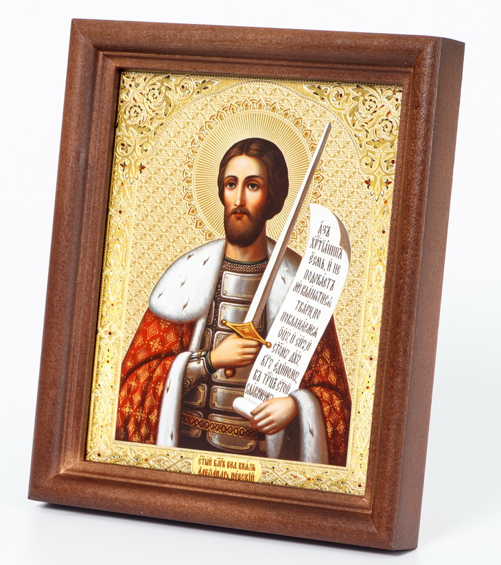 Икона в деревянной рамке №1 11х13 двойное тиснение Александр Невский 4