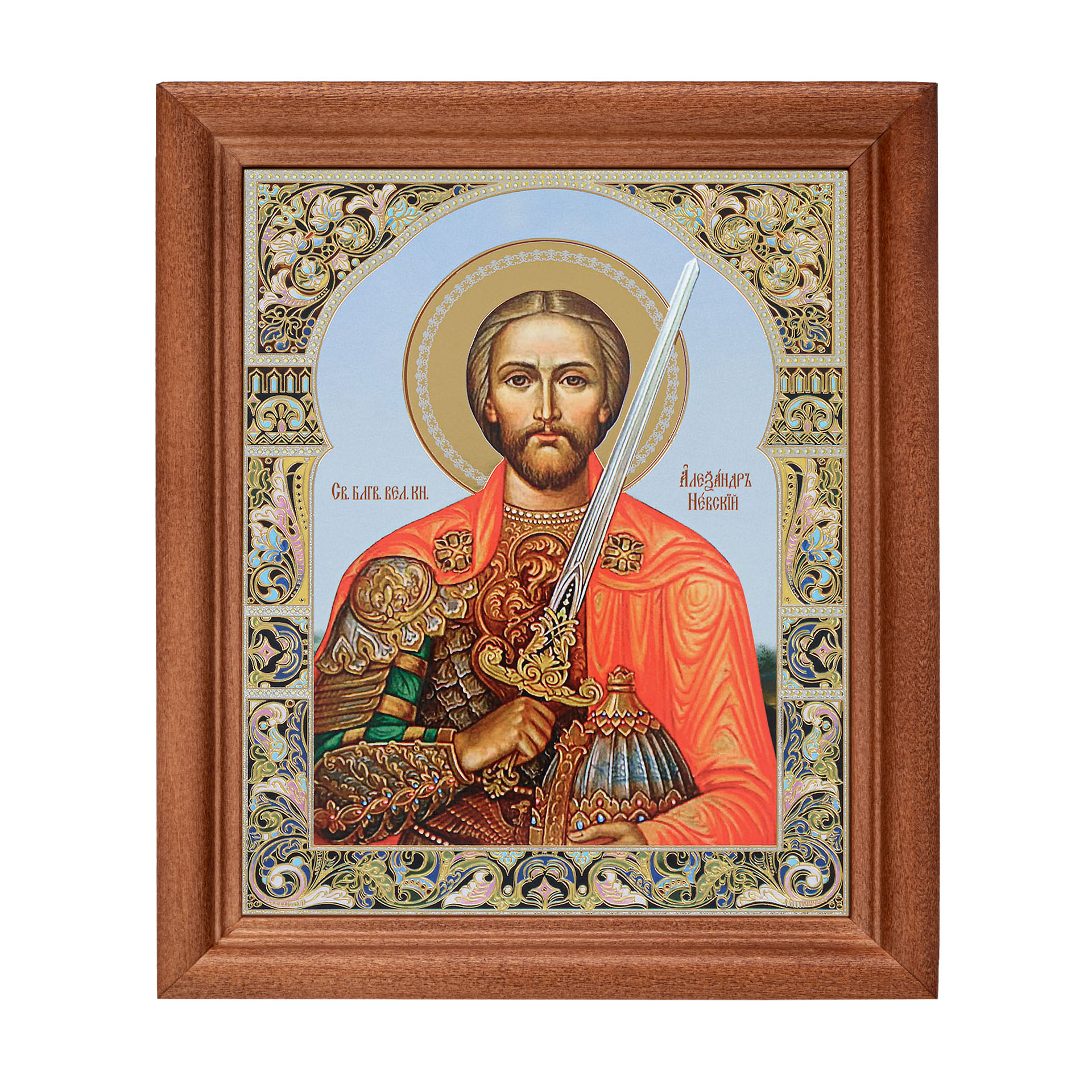 Икона в деревянной рамке №1 11х13 двойное тиснение Александр Невский 6