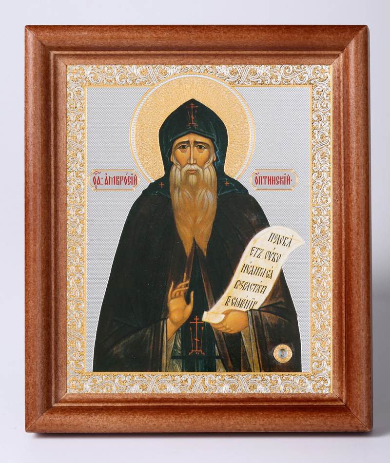 Икона в деревянной рамке №1 11х13 двойное тиснение Амвросий Оптинский