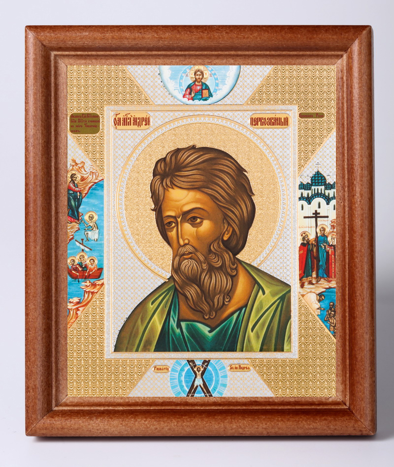 Икона в деревянной рамке №1 11х13 двойное тиснение Андрей Первозванный