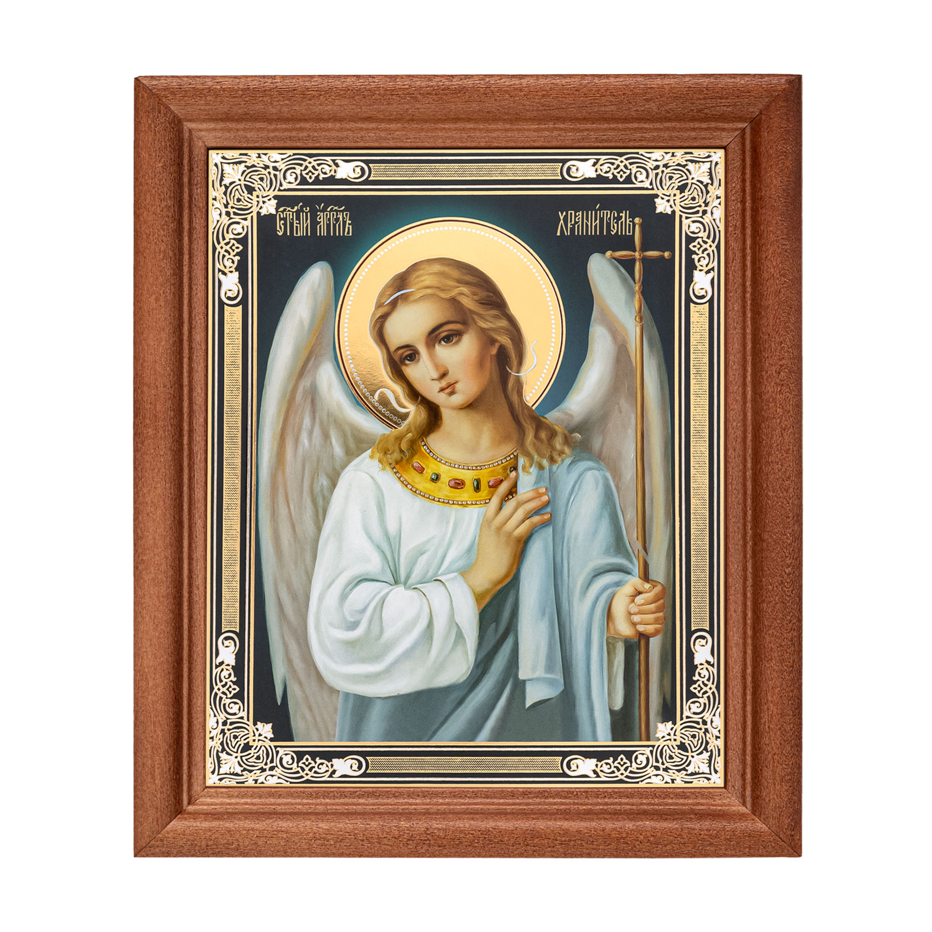 Икона в деревянной рамке №1 11х13 двойное тиснение Ангел-Хранитель (поясной) №9